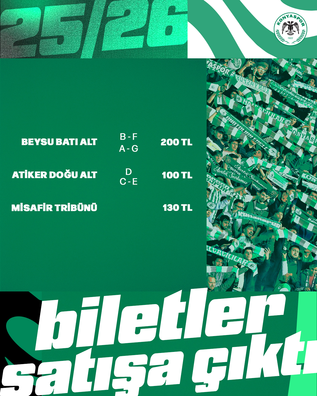 5 Şubat Perşembe günü saat 15.30’da MEDAŞ Konya Büyükşehir Stadyumu’nda oynanacak maçın biletleri, 3 Şubat Salı günü saat 13.00 itibarıyla satışa sunuldu.