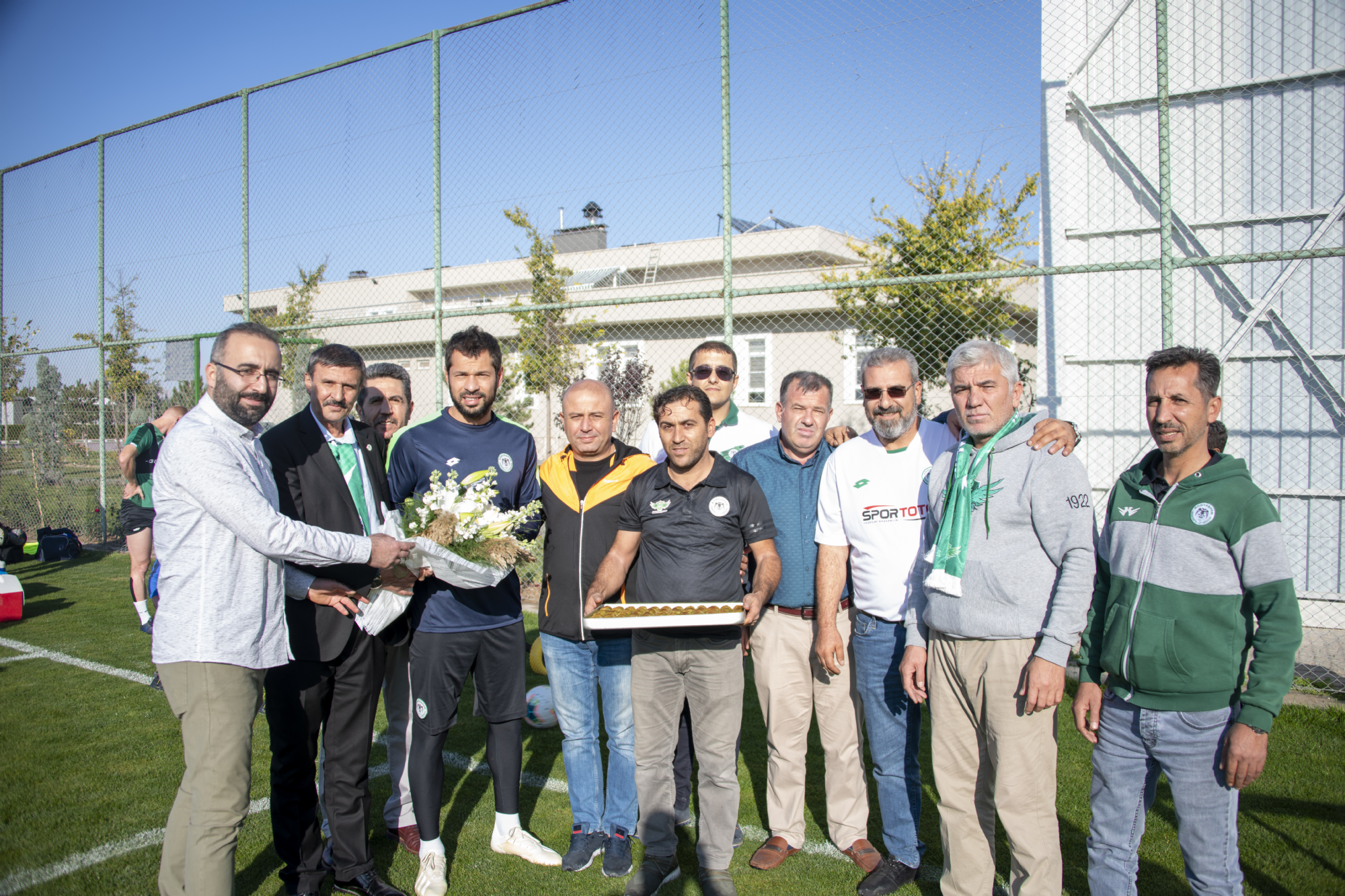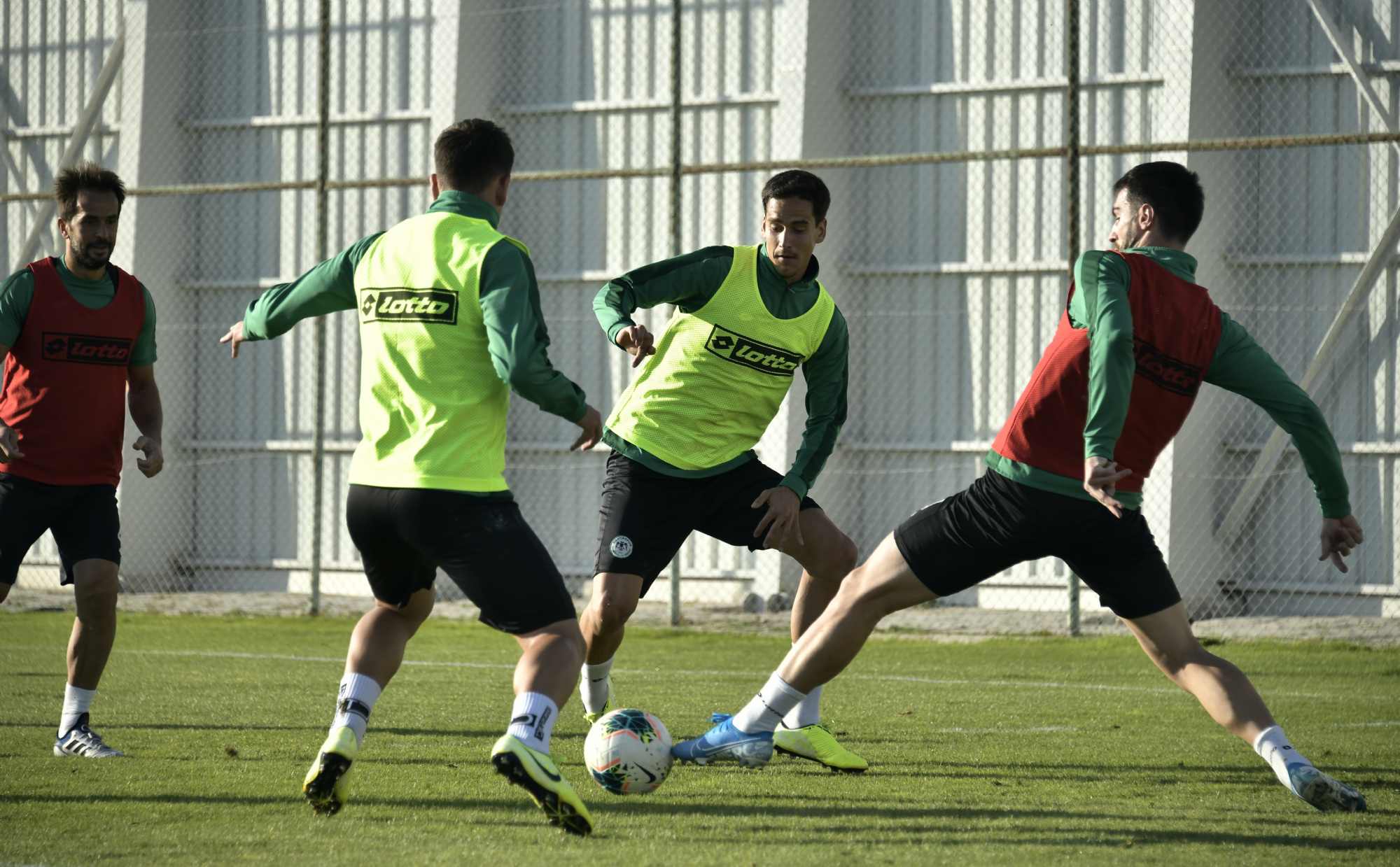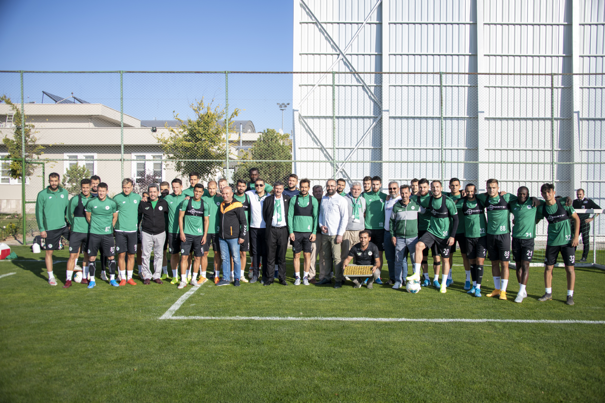 Süper Lig 2019-2020 Cemil Usta Sezonu 9.hafta maçında deplasmanda Fenerbahçe ile karşılaşacak İttifak Holding Konyaspor’umuz, akşam saatlerinde yaptığı antrenmanla günü değerlendirdi. Teknik Direktörümüz Aykut Kocaman ve yardımcı antrenörlerimiz yönetiminde Kayacık Tesisleri’mizde yapılan antrenmana tüm oyuncularımız katıldı. Koşu ve toplu-topsuz oyunlarla başlayan antrenman 4’e 4 top kapma çalışması ile devam etti. Oyuncularımız antrenmanı şut ve gol çalışması ile tamamladı. Bu arada, antrenman öncesi bir grup taraftarımız takımımıza moral ziyareti yaparak, başarılı kalecimiz Serkan'a çiçek ile tatlı ikram etti.