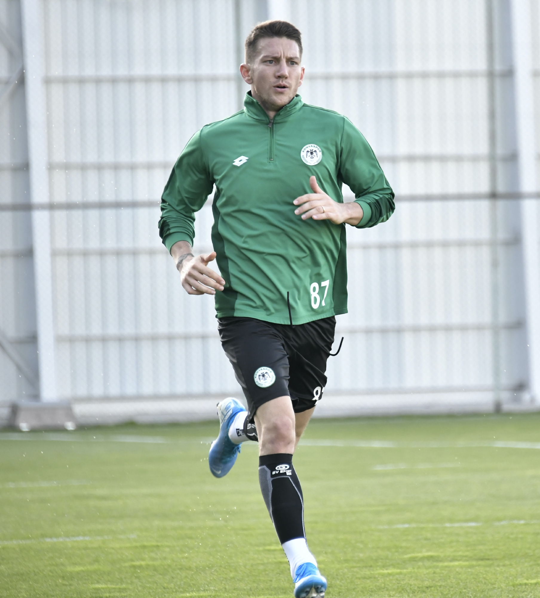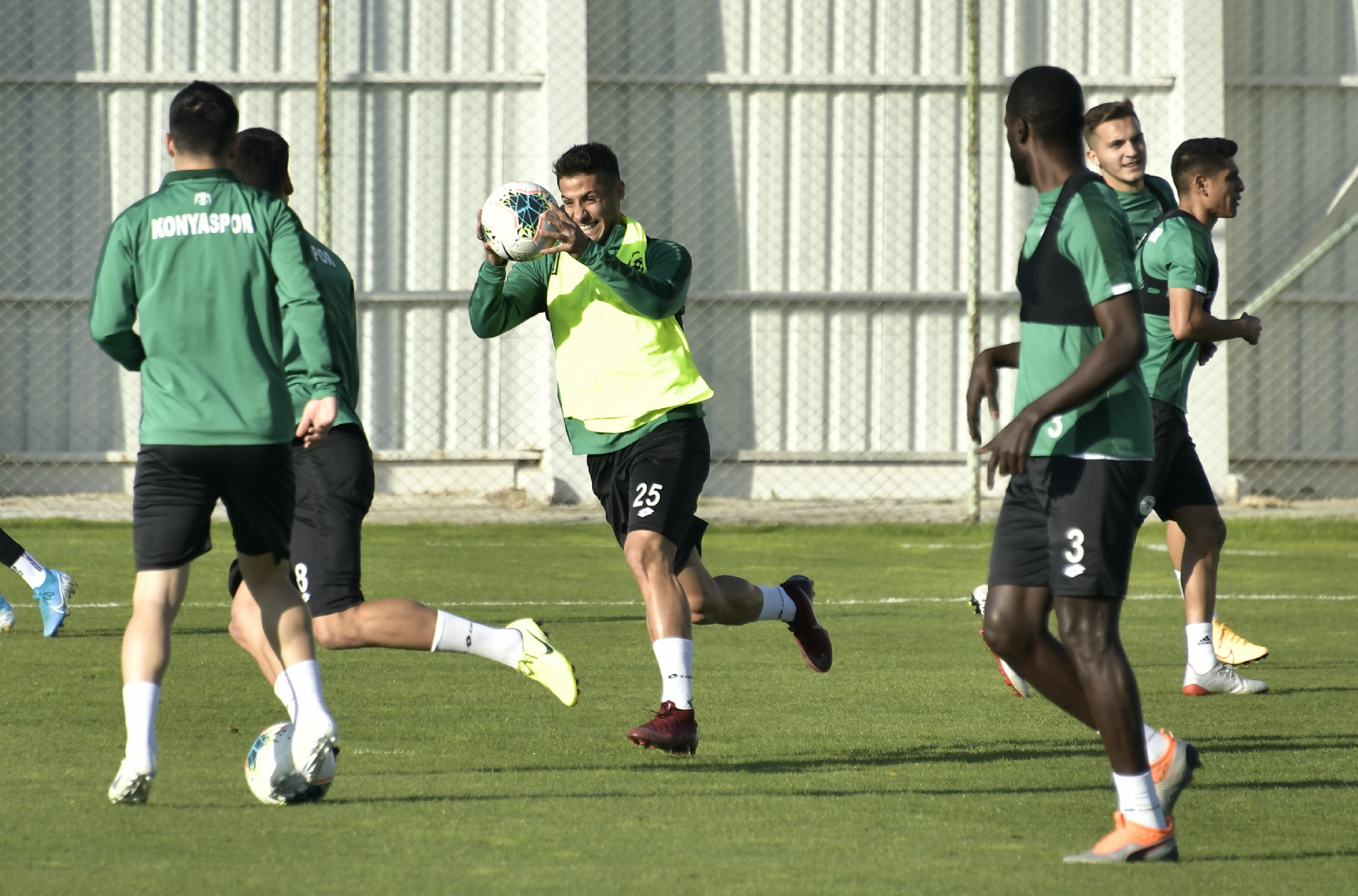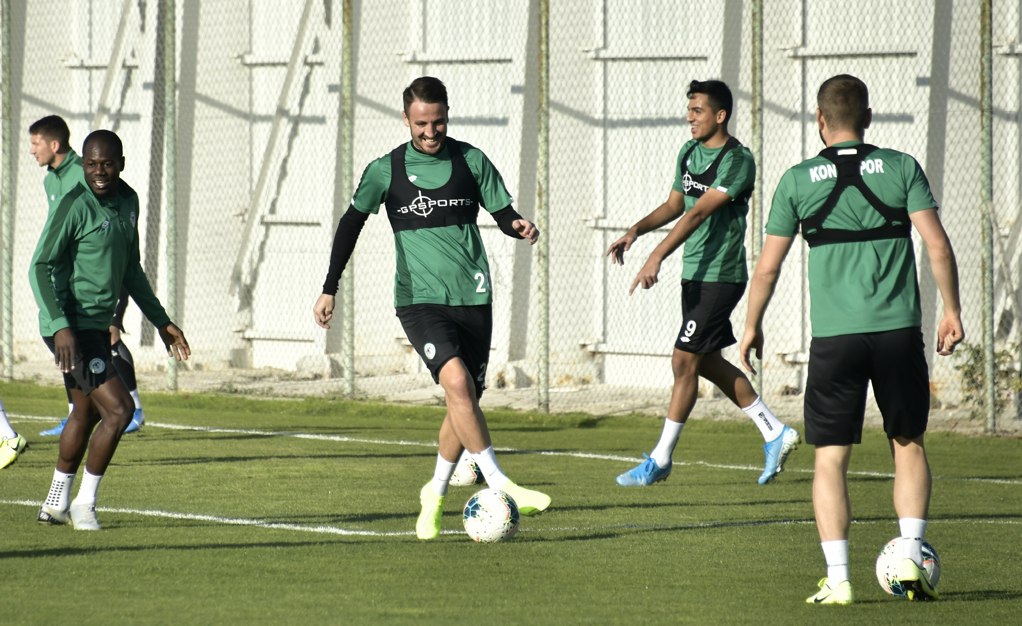 Süper Lig 2019-2020 Cemil Usta Sezonu 9.hafta maçında deplasmanda Fenerbahçe ile karşılaşacak İttifak Holding Konyaspor’umuz, akşam saatlerinde yaptığı antrenmanla günü değerlendirdi. Teknik Direktörümüz Aykut Kocaman ve yardımcı antrenörlerimiz yönetiminde Kayacık Tesisleri’mizde yapılan antrenmana tüm oyuncularımız katıldı. Koşu ve toplu-topsuz oyunlarla başlayan antrenman 4’e 4 top kapma çalışması ile devam etti. Oyuncularımız antrenmanı şut ve gol çalışması ile tamamladı. Bu arada, antrenman öncesi bir grup taraftarımız takımımıza moral ziyareti yaparak, başarılı kalecimiz Serkan'a çiçek ile tatlı ikram etti.