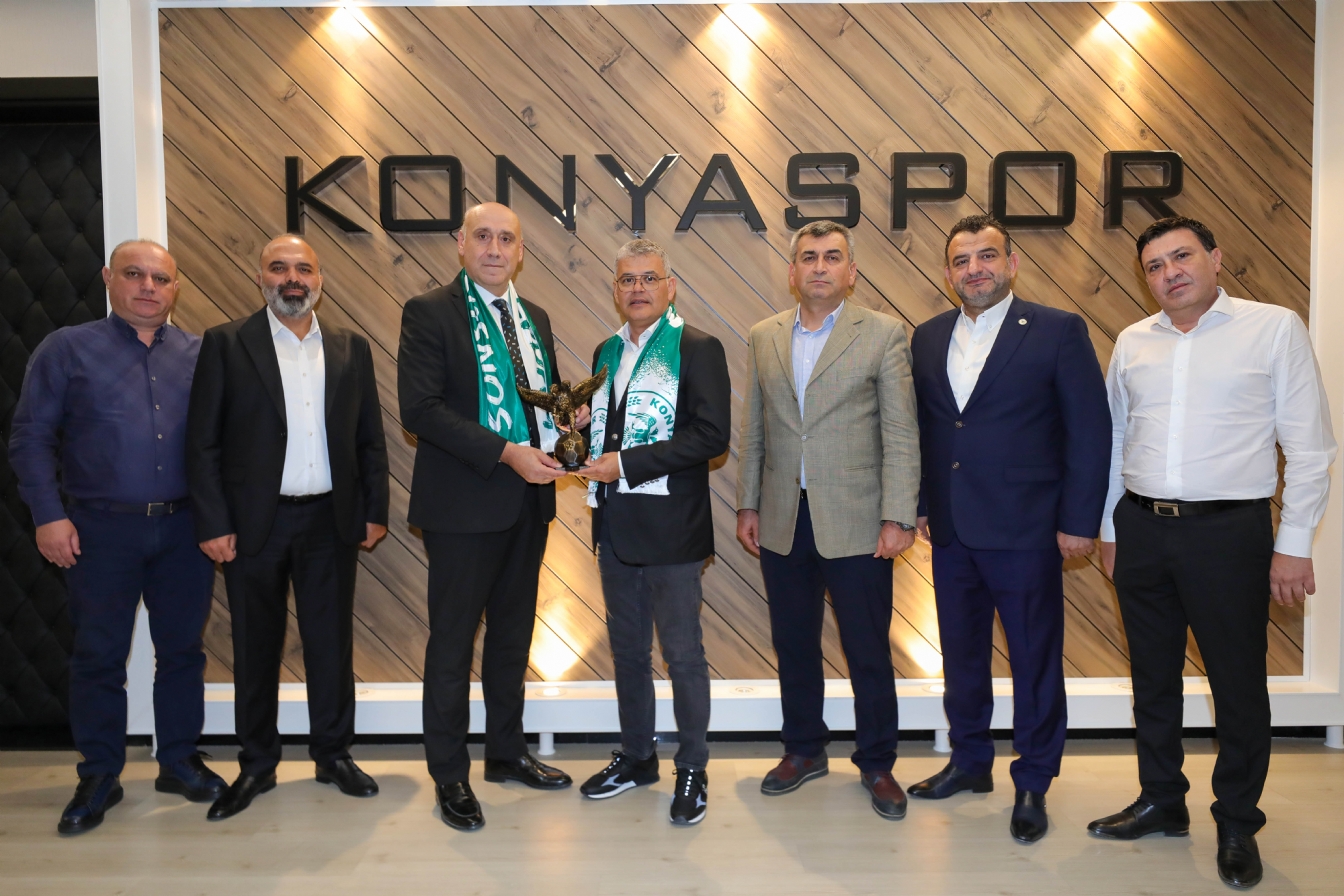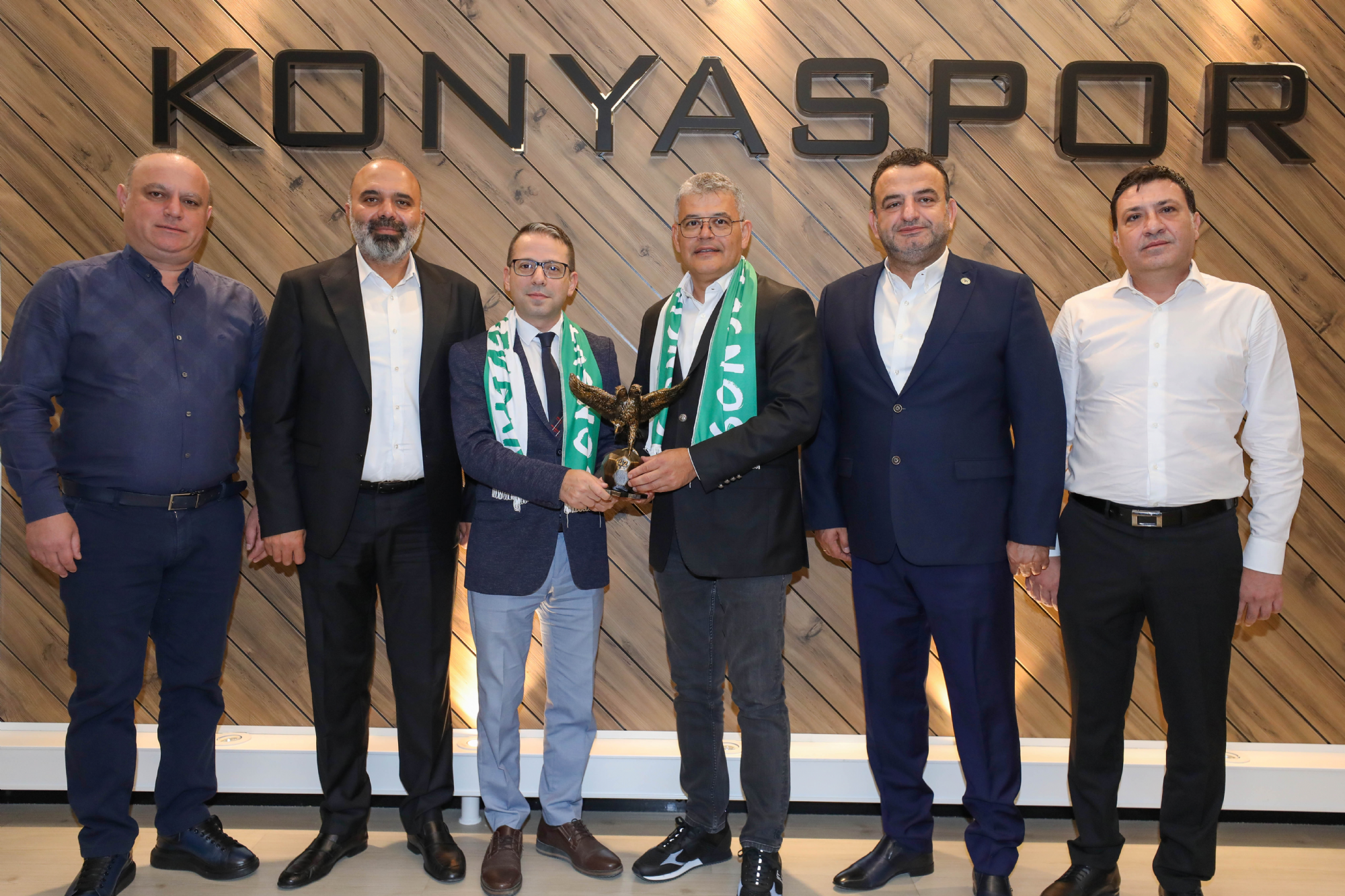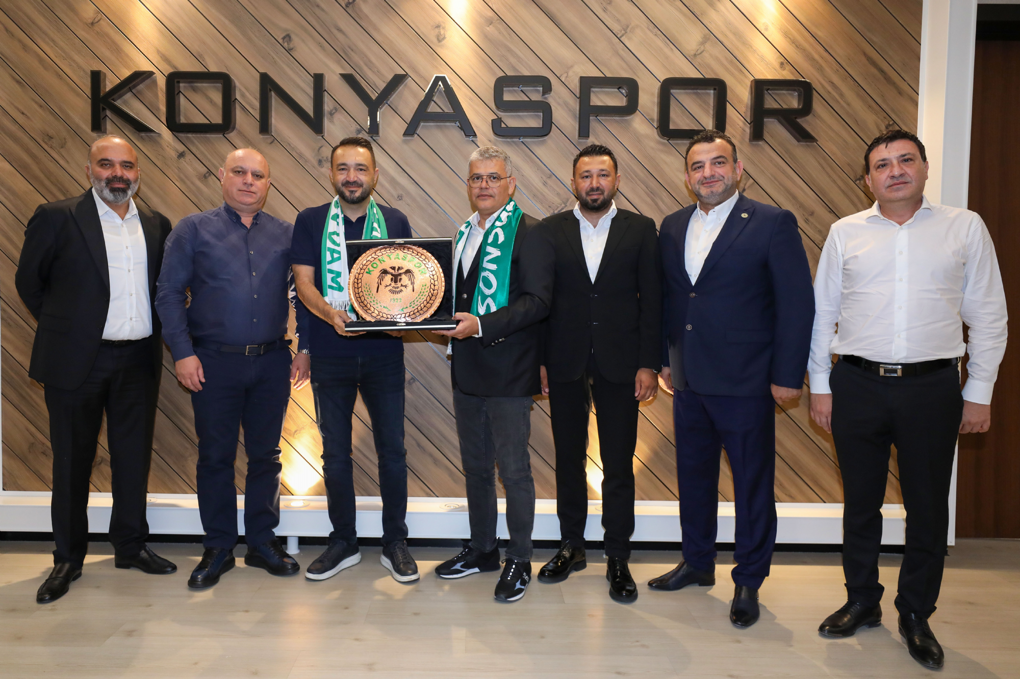 Kulüp Başkanımız Sayın Ömer Atiker ve yönetim kurulu üyelerimize nezaket ziyaretleri devam ediyor. Konyaspor Kulübü İdari Binası'nda misafirleri kabul eden Başkanımız Ömer Atiker'e; As Başkanlarımız Okay Tınkır, Ömer Demirhan, Mehmet Baypınar ile Yönetim Kurulu Üyelerimizden İsa Özgençoğlu eşlik etti. Başkanımız Ömer Atiker ve yönetim kurulu üyelerimiz; İlbank Konya Bölge Müdürü Sedat Yılmaz, Basın İlan Kurumu Konya Şube Müdürü Mehmet Feramuz Ayan, HASMER Konya Mercedes Bayi Genel Müdürü Mustafa Yanıktepe, Konyaspor Akademisi U19 forma sırt sponsoru Yapalı İnşaat Yönetim Kurulu Başkanı Hasan Birol Yapalı, Anadolu Medya Grubu (ANMEG) Vakfı Mütevellisi Nurettin Bay ve İlker Özkan, stadyum isim sponsorumuz MEDAŞ Genel Müdürü Erol Uçmazbaş, Müstakil Sanayici İş Adamları Derneği Konya Gençlik Şubesi (Genç MÜSİAD Konya) Yönetim Kurulu Başkanı Mahmut Asım Elliiki ve Yönetim Kurulu Üyeleri, Konya Gençlik ve Spor İl Müdürü Birdal Öztürk ile Kulüp avukatlarımız Safa Camcı ve Ahmet Murat Koru'yu ağırladı. Başkanımız Ömer Atiker, “Göreve geldiğimiz ilk andan itibaren, Konyaspor’umuzun başarılı olması noktasında şehrimizin tüm dinamiklerinin bir araya gelmesi gerektiğini ifade ettik. Çok şükür geride kalan üç aylık dönemde bu noktada verilen desteklerle doğru yolda olduğumuzu düşünüyoruz. Konyaspor, şehrimizin önemli bir marka değeri. Bu marka değerimizi güçlendirmek, camiamızın ortak akıl ve dayanışmasıyla mümkün olacaktır. Yönetim Kurulumuzdaki değerli arkadaşlarımız ile bunun için mesai harcıyoruz. Şehrimizin dinamiklerinin ve Sivil Toplum Kuruluşlarının yanımızda olduğunu, destek verdiğini görmek bize ayrı bir moral motivasyon oluyor. Konya olarak omuz omuza durmalıyız. Çünkü; birlik ve beraberlik içerisinde olduğumuz vakit her türlü zorluğun üstesinden geleceğimize inanıyoruz.” diye konuştu. Ziyaretler, karşılıklı hediye takdimiyle sona erdi.
