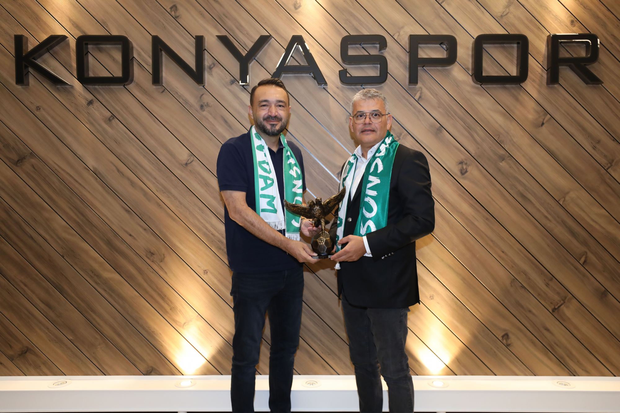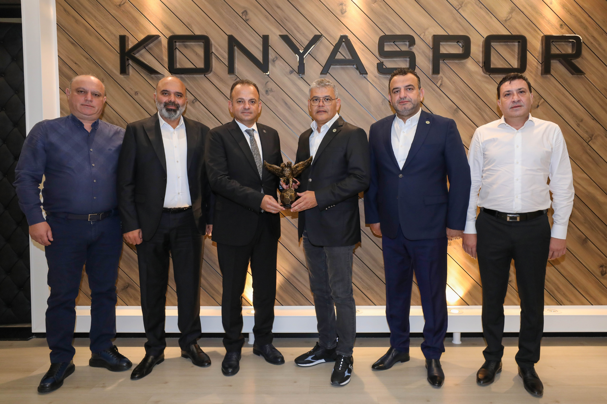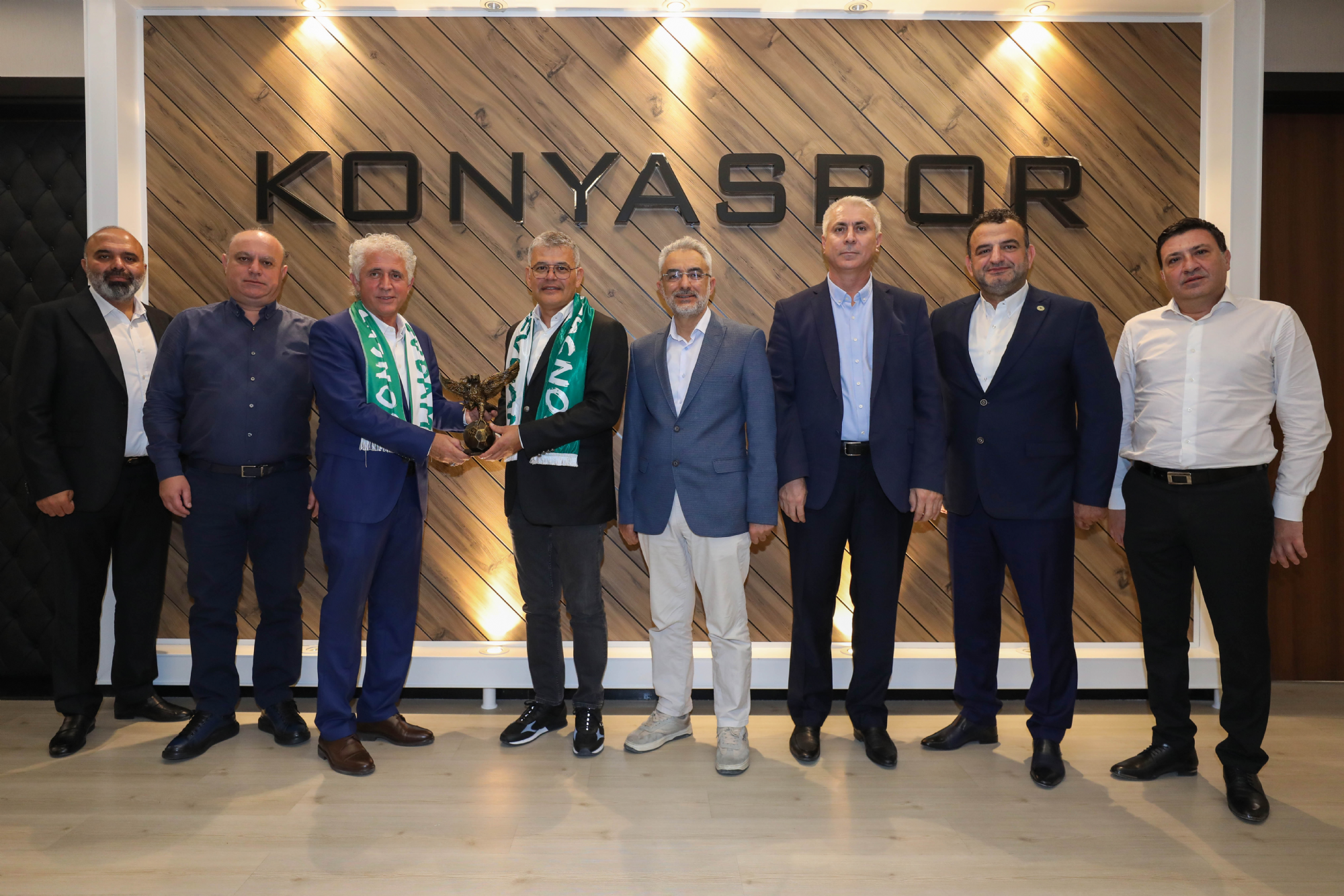 Kulüp Başkanımız Sayın Ömer Atiker ve yönetim kurulu üyelerimize nezaket ziyaretleri devam ediyor. Konyaspor Kulübü İdari Binası'nda misafirleri kabul eden Başkanımız Ömer Atiker'e; As Başkanlarımız Okay Tınkır, Ömer Demirhan, Mehmet Baypınar ile Yönetim Kurulu Üyelerimizden İsa Özgençoğlu eşlik etti. Başkanımız Ömer Atiker ve yönetim kurulu üyelerimiz; İlbank Konya Bölge Müdürü Sedat Yılmaz, Basın İlan Kurumu Konya Şube Müdürü Mehmet Feramuz Ayan, HASMER Konya Mercedes Bayi Genel Müdürü Mustafa Yanıktepe, Konyaspor Akademisi U19 forma sırt sponsoru Yapalı İnşaat Yönetim Kurulu Başkanı Hasan Birol Yapalı, Anadolu Medya Grubu (ANMEG) Vakfı Mütevellisi Nurettin Bay ve İlker Özkan, stadyum isim sponsorumuz MEDAŞ Genel Müdürü Erol Uçmazbaş, Müstakil Sanayici İş Adamları Derneği Konya Gençlik Şubesi (Genç MÜSİAD Konya) Yönetim Kurulu Başkanı Mahmut Asım Elliiki ve Yönetim Kurulu Üyeleri, Konya Gençlik ve Spor İl Müdürü Birdal Öztürk ile Kulüp avukatlarımız Safa Camcı ve Ahmet Murat Koru'yu ağırladı. Başkanımız Ömer Atiker, “Göreve geldiğimiz ilk andan itibaren, Konyaspor’umuzun başarılı olması noktasında şehrimizin tüm dinamiklerinin bir araya gelmesi gerektiğini ifade ettik. Çok şükür geride kalan üç aylık dönemde bu noktada verilen desteklerle doğru yolda olduğumuzu düşünüyoruz. Konyaspor, şehrimizin önemli bir marka değeri. Bu marka değerimizi güçlendirmek, camiamızın ortak akıl ve dayanışmasıyla mümkün olacaktır. Yönetim Kurulumuzdaki değerli arkadaşlarımız ile bunun için mesai harcıyoruz. Şehrimizin dinamiklerinin ve Sivil Toplum Kuruluşlarının yanımızda olduğunu, destek verdiğini görmek bize ayrı bir moral motivasyon oluyor. Konya olarak omuz omuza durmalıyız. Çünkü; birlik ve beraberlik içerisinde olduğumuz vakit her türlü zorluğun üstesinden geleceğimize inanıyoruz.” diye konuştu. Ziyaretler, karşılıklı hediye takdimiyle sona erdi.