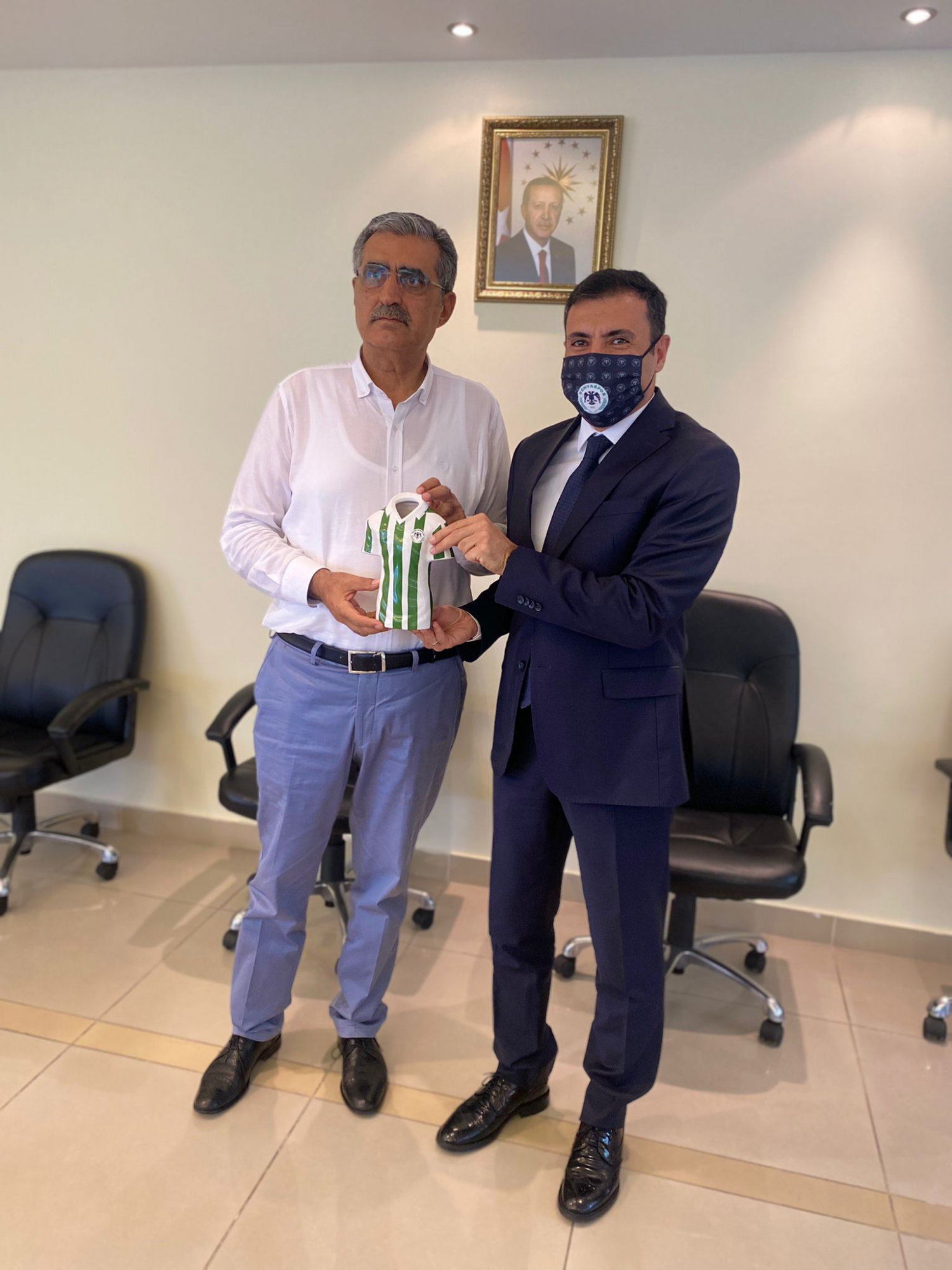 Başkanımız Fatih Özgökçen ve beraberindeki heyet, “TORKU ve NO ON” gibi Türkiye’ye mal olmuş markalarıyla kulübümüze büyük katkılar sağlayan PANKOBİRLİK Genel Başkanı Recep Konuk’u ziyaret etti. Türkiye’nin en büyük 500 Sanayi Kuruluşu listesinde yer alan ve ilk 50’nin değişmezi haline gelen, büyük sanayi kuruluşlarını geride bırakan şehrimizin yüz akı Konya Şeker Sanayi ve Ticaret A.Ş ile diğer iştiraklerinin bugünlere gelmesinde büyük pay sahibi olan PANKOBİRLİK Genel Başkanı Recep Konuk, Başkanımız ve yönetim kurulu üyelerimizle bir araya geldi. Konyaspor’un dünü, bugünü ve yarınının konuşulduğu ziyaret, son derece sıcak ve samimi bir havada gerçekleşti. Başkanımız Fatih Özgökçen, ziyaretin sonunda yakın ilgi ve ev sahipliği için PANKOBİRLİK Genel Başkanı Recep Konuk’a teşekkür ederken, üzerinde isminin yazılı olduğu 42 numaralı formayı hediye etti. Ziyaret, günün anısına çekilen fotoğrafların ardından sona erdi.
