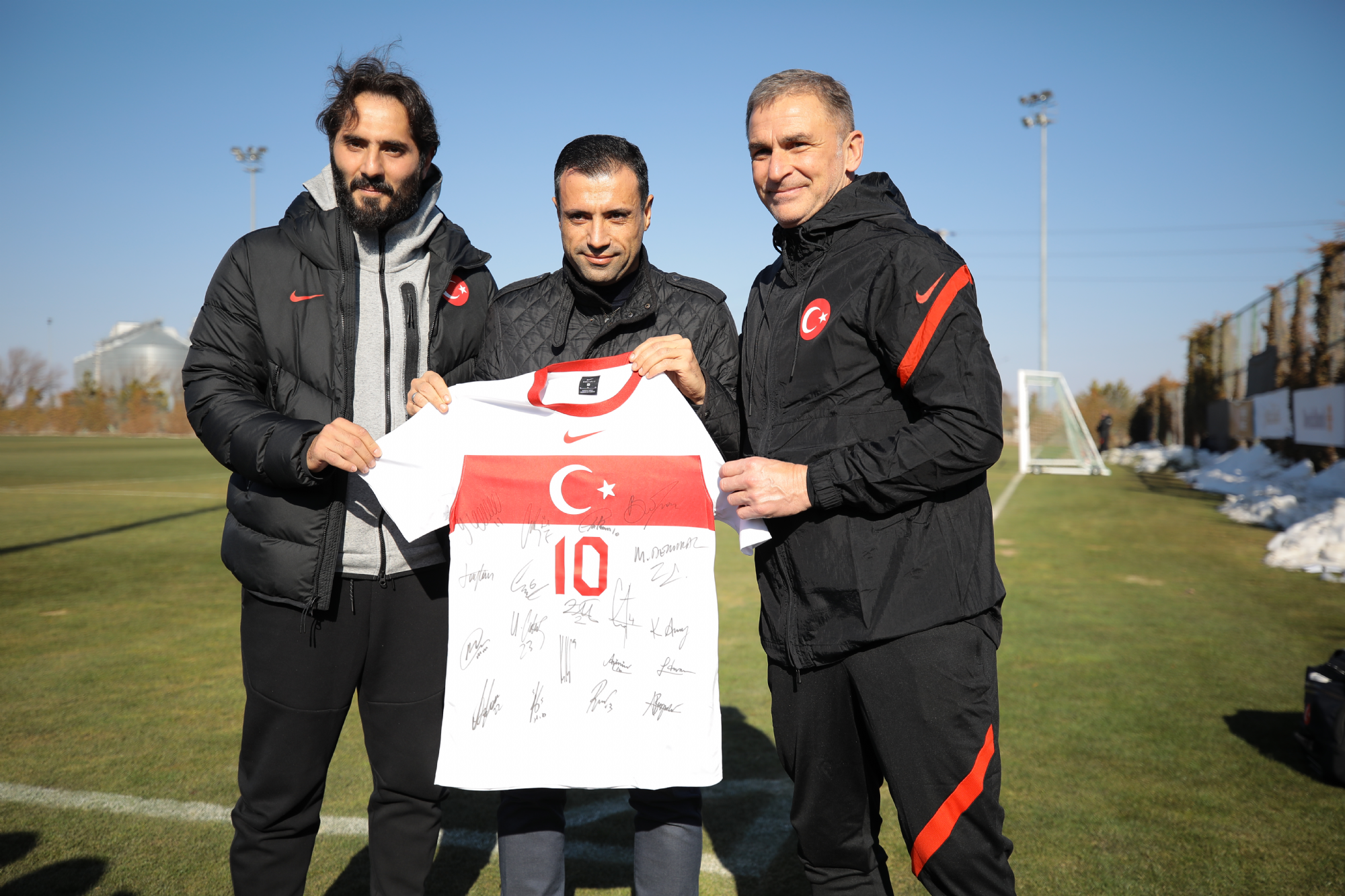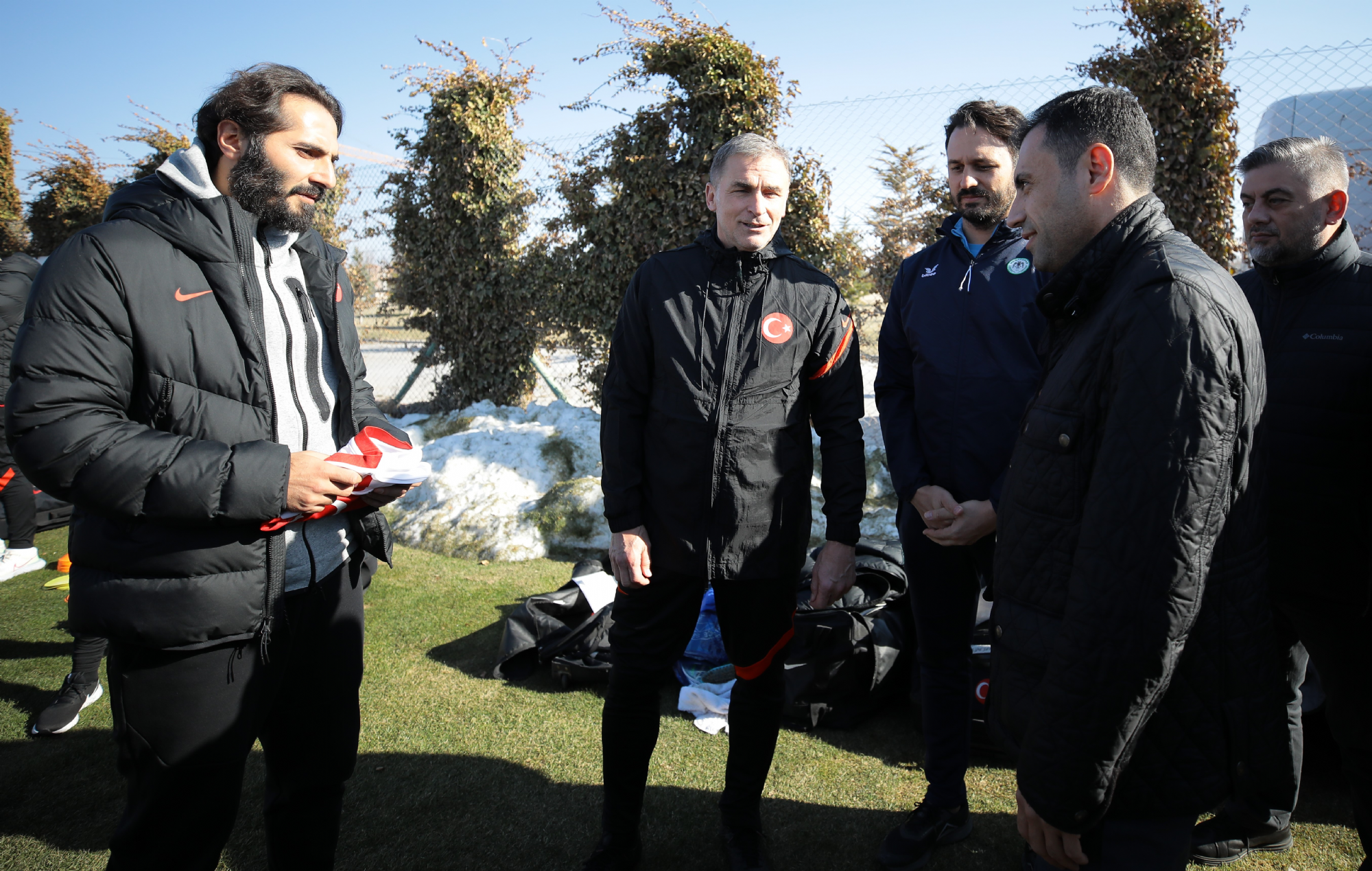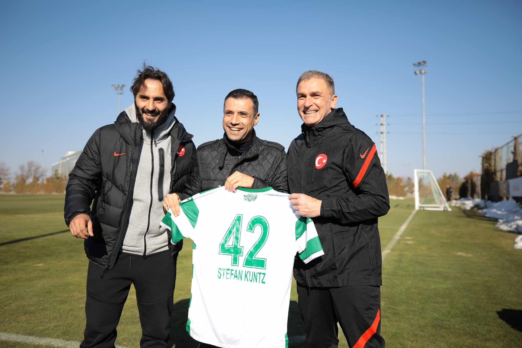 Başkanımız Fatih Özgökçen ve yönetim kurulumuz, İtalya ile oynayacağı hazırlık karşılaşmasının hazırlıklarını Koyuncu Grup Kayacık Tesisleri'mizde sürdüren A Milli Takımımızın antrenmanını ziyaret etti. A Milli Takım Teknik Direktörü Stefan Kuntz ve A Milli Futbol Takım Sorumlusu Hamit Altıntop ile bir süre görüşen Başkanımız Fatih Özgökçen, Konyaspor'umuzun formasını hediye etti.