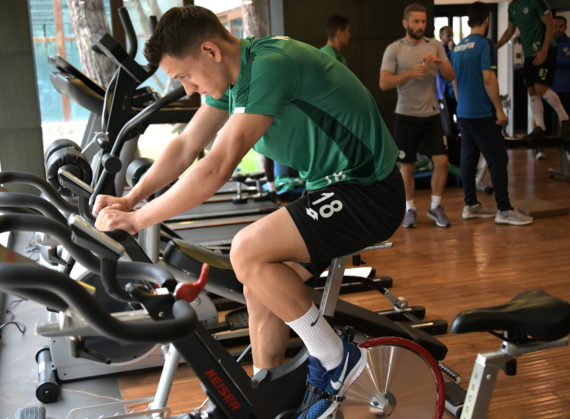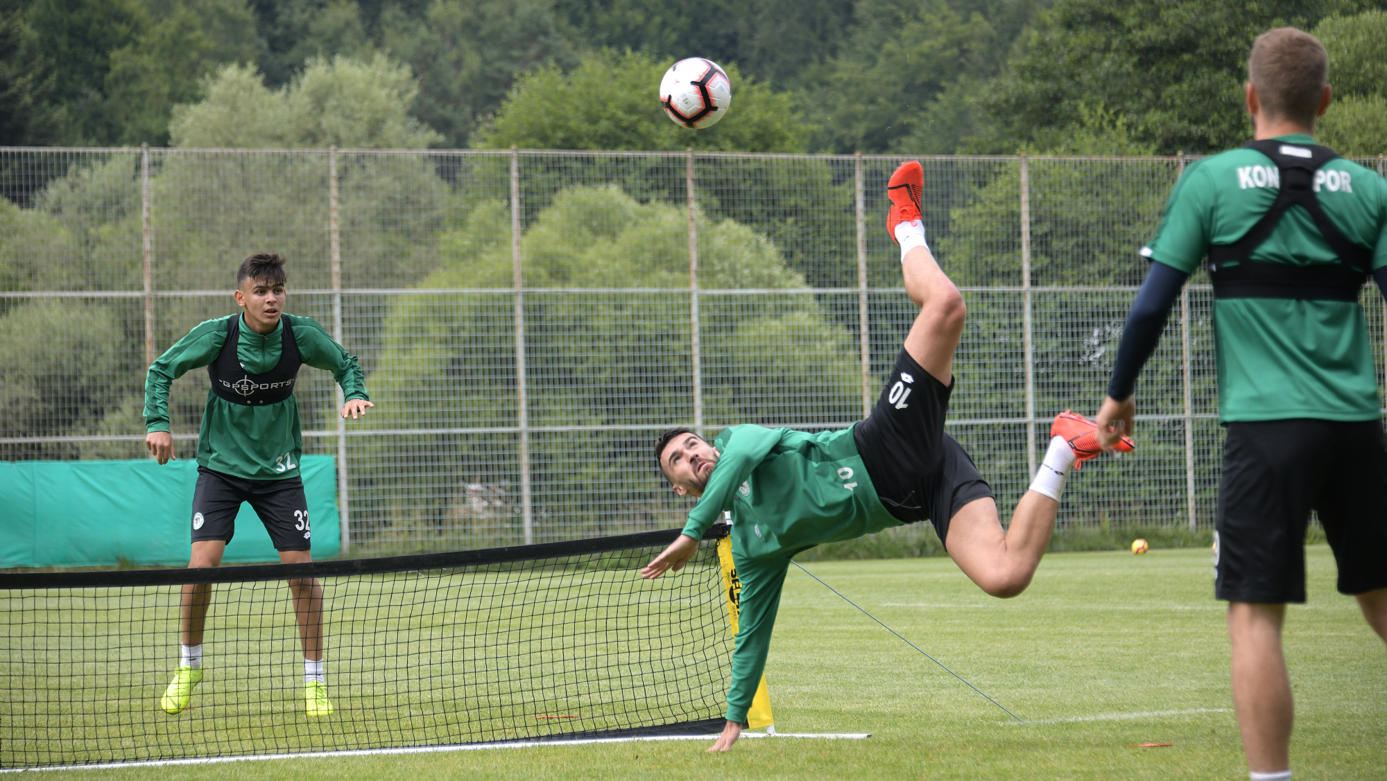 Konyaspor’umuz, altıncı gününe giren Bolu’daki birinci etap kampında günün ilk çalışmasını sabah gerçekleştirdi. Teknik Direktörümüz Aykut Kocaman ve yardımcı antrenörlerimiz yönetiminde yapılan antrenmanda iki gruba ayrılan oyuncularımız CORE ısınma ve kuvvet çalışması yaptı. Salon çalışmasında yer alan ve tedavilerine devam edilen Fallou Diagne, Amir hadziahmetovic, Kadir Kaan Özdemir ve Paolo Hurtado saha çalışmasına katılmayarak takımdan ayrı çalıştı. Oyuncularımız daha sonra sahada gruplar halinde ayak tenisi oynadı. Turnuvanın galibi oynadığı 6 maçı da kazanan Ertuğrul Taşkıran, Ferhat Öztorun ve Yevhen Opanasenko’dan oluşan takım oldu.