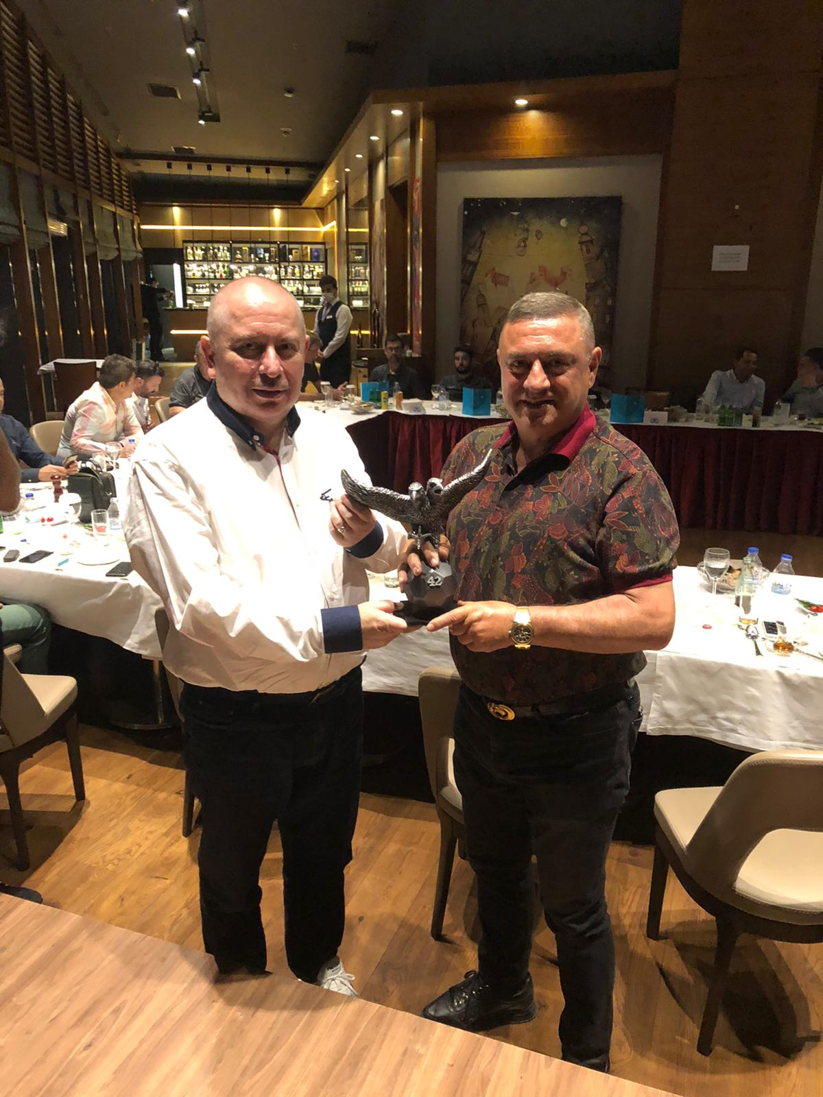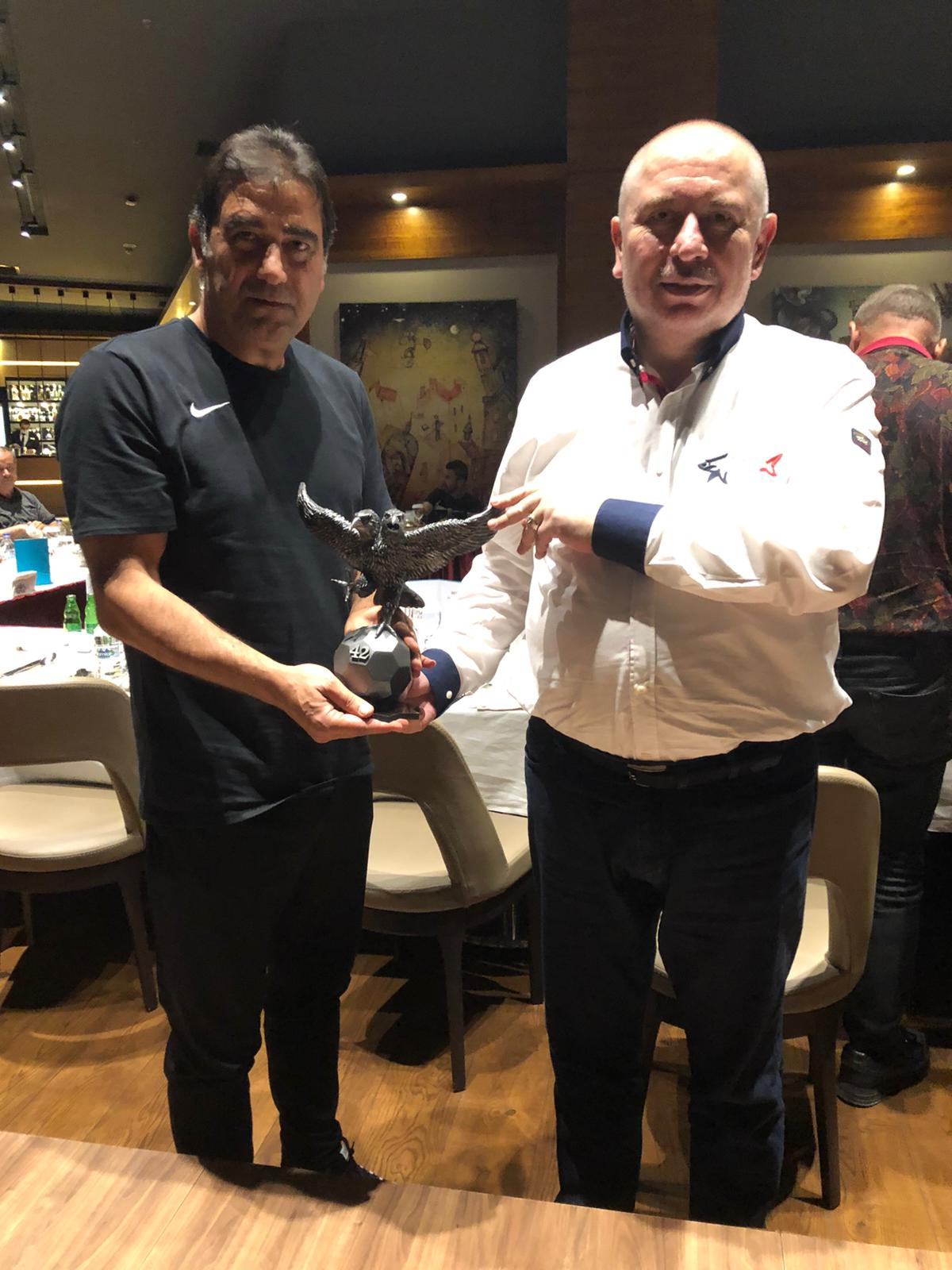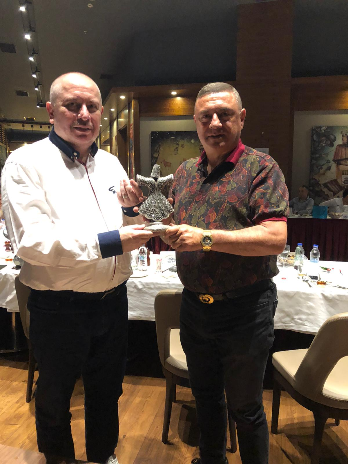 Başkanımız Hilmi Kulluk ve yönetim kurulu üyelerimiz, Çaykur Rizespor Başkanı Hasan Kartal, Teknik Direktör Ünal Karaman ve yardımcılarıyla dostluk yemeğinde biraraya geldi. Yemeğin ardından Başkanımız Hilmi Kulluk, çift başlı kartal heykelimizin minyatürünü Başkan Hasan Kartal ve teknik direktör Ünal Karaman’a hediye etti.