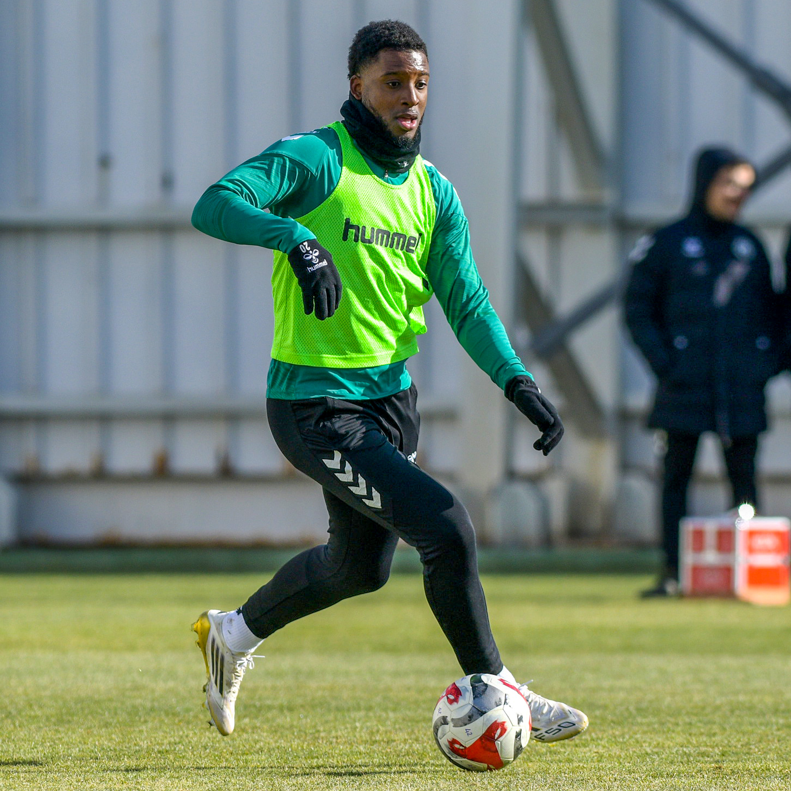 Sahada ısınma ve 5’e 2 ile başlayan antrenman, topla oyun ve koşu ile tamamlandı.