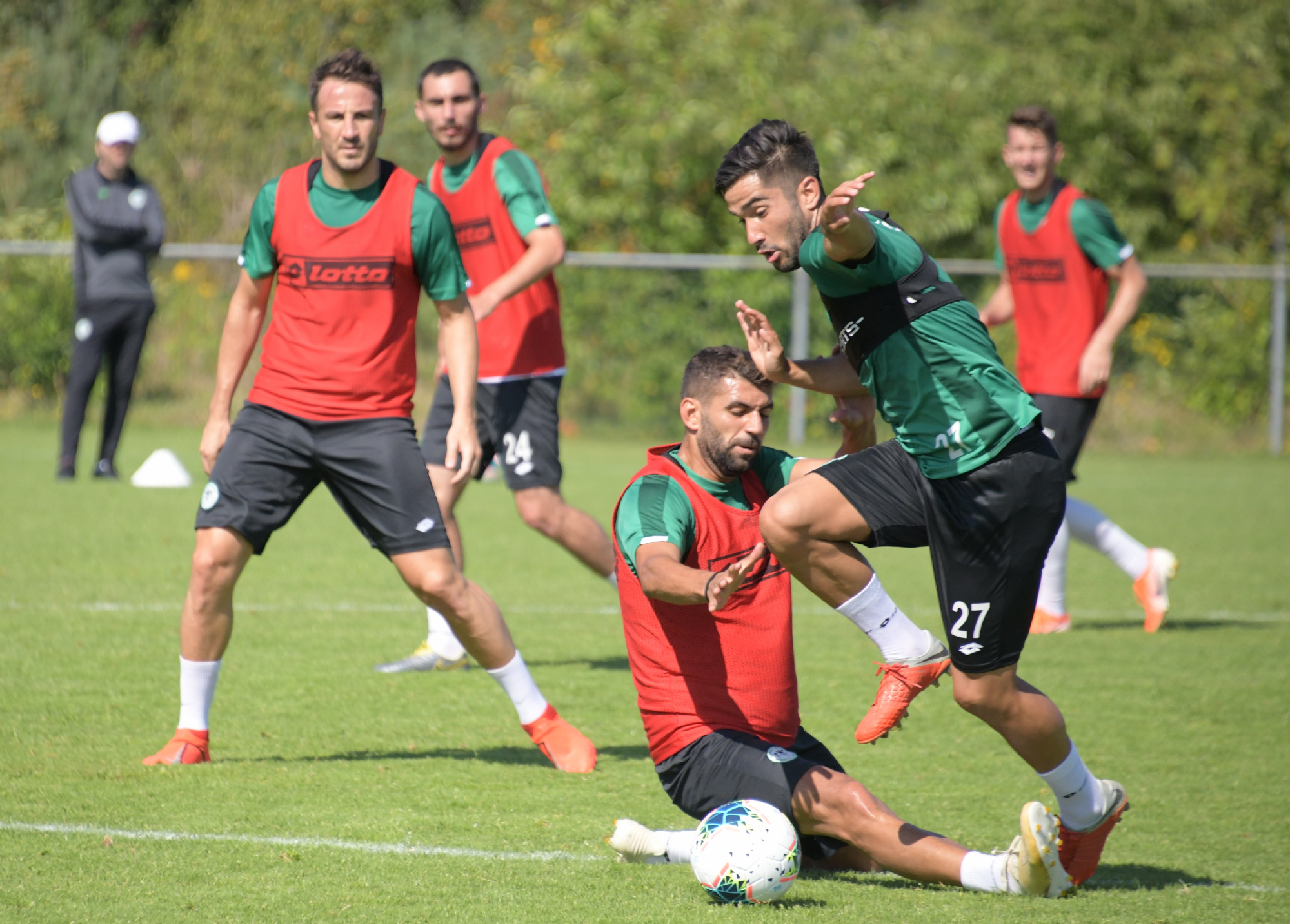 Konyaspor’umuz, bir günlük aranın ardından sabah saatlerinde yaptığı antrenmanla Hollanda’daki ikinci etap kamp hazırlıklarına devam etti. Teknik Direktörümüz Aykut Kocaman ve yardımcı antrenörlerimiz yönetiminde TSİ 11:00’da başlayan antrenmana tedavisine devam edilen Paolo Hurtado katılmazken, Fallou Diagne antrenmanın tamamında takımla, Riad Bajic ve Ali Karakaya ise takımdan ayrı olarak Atletik Performans Antrenörümüz Alper Aşçı ve fizyoterapist Salih Kırışka yönetiminde çalıştı. Koşu ve topla yapılan ısınma hareketleri ile başlayan antrenman pas çalışması ve topla oyunla devam etti. Antrenman çift kale maç ile sona erdi.