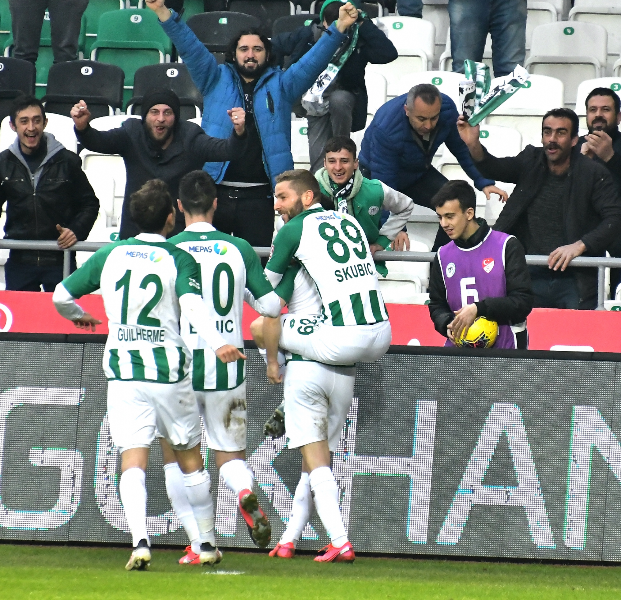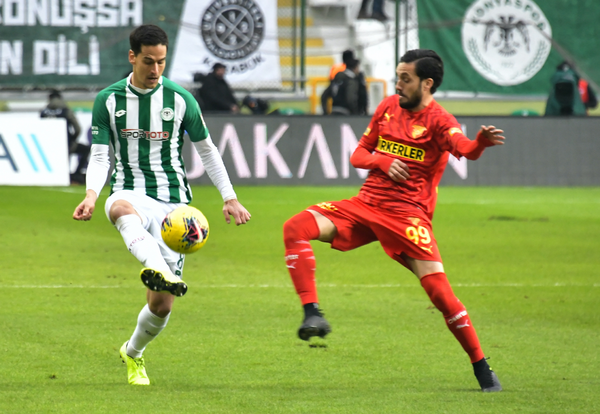İttifak Holding Konyaspor’umuz, Süper Lig’in 22.haftasında iç sahada oynadığı mücadelede Göztepe’ye 3-1’lik skorla mağlup oldu. Konya Büyükşehir Belediyesi Stadyumu’nda saat 20:00’da başlayan ve yaklaşık 15 bin taraftarın izlediği karşılaşma öncesinde hayatını kaybeden eski FIFA kokartlı hakem ve Merkez Hakem Kurulu eski Başkanları’ndan Hilmi Ok'un anısına 1 dakikalık saygı duruşunda bulunuldu. Karşılaşmaya etkili başlayan İttifak Holding Konyaspor’umuz, 33.dakikada Ömer Ali Şahiner’in golüyle 1-0 öne geçerken, 39.dakikada Serdar Gürler skora 1-1 ile dengeyi getirdi ve ilk yarı bu sonuçla tamamlandı. İkinci yarıda rakip kalede Levan Shengelia, Robert Mak ve Amir Hadziahmetovic ile etkili olan ve pozisyonlara giren takımımız bunları değerlendiremezken, 69.dakikada andre de Castro ve 74.dakikada Halil Akbunar’ın gollerine engel olamadı ve mücadeleden 3-1’lik skorla mağlup ayrıldı. STAD: Konya Büyükşehir Belediyesi HAKEMLER: Ali Şansalan, Alpaslan Dedeş, Mehmet Cem Hanoğlu İTTİFAK HOLDİNG KONYASPOR: Serkan Kırıntılı, Nejc Skubic, Ali Turan, Uğur Demirok, Guilherme Sitya, Jens Jonsson (Dk.71 Amir), Marko Jevtovic (Dk.62 Robert Mak), Levan Shengelia, Deni Milosevic, Ömer Ali Şahiner (Dk.66 Paolo Hurtado), Riad Bajic YEDEKLER: Ertuğrul, Volkan, Alper Uludağ, Şener Kaya, Ferhat Öztorun, Erdon Daci, Rogerio Thuram TEKNİK SORUMLU: Bülent Korkmaz GÖZTEPE: Göktuğ, Gassama, Titi, Alpaslan Öztürk, Berkan Emir, Andre De Castro (Dk.84 Borges), Soner Aydoğdu, Napoleoni, Halil, Serdar Gürler (Dk.88 Mossoro), Wilczek (Dk.73 Jerome) YEDEKLER: Eren, Murat, Leo Schwechlen, Wallace Reis, Yalçın, Deniz Kadah, Tripic TEKNİK SORUMLU: Ersan Parlatan SARI KARTLAR: Guilherme, Jevtovic (İttifak Holding Konyaspor) GOLLER: Ömer Ali Şahiner (Dk.33) (İttifak Holding Konyaspor), Serdar (Dk.39), Andre De Castro (Dk.69), Halil Akbunar (Dk.74) (Göztepe)