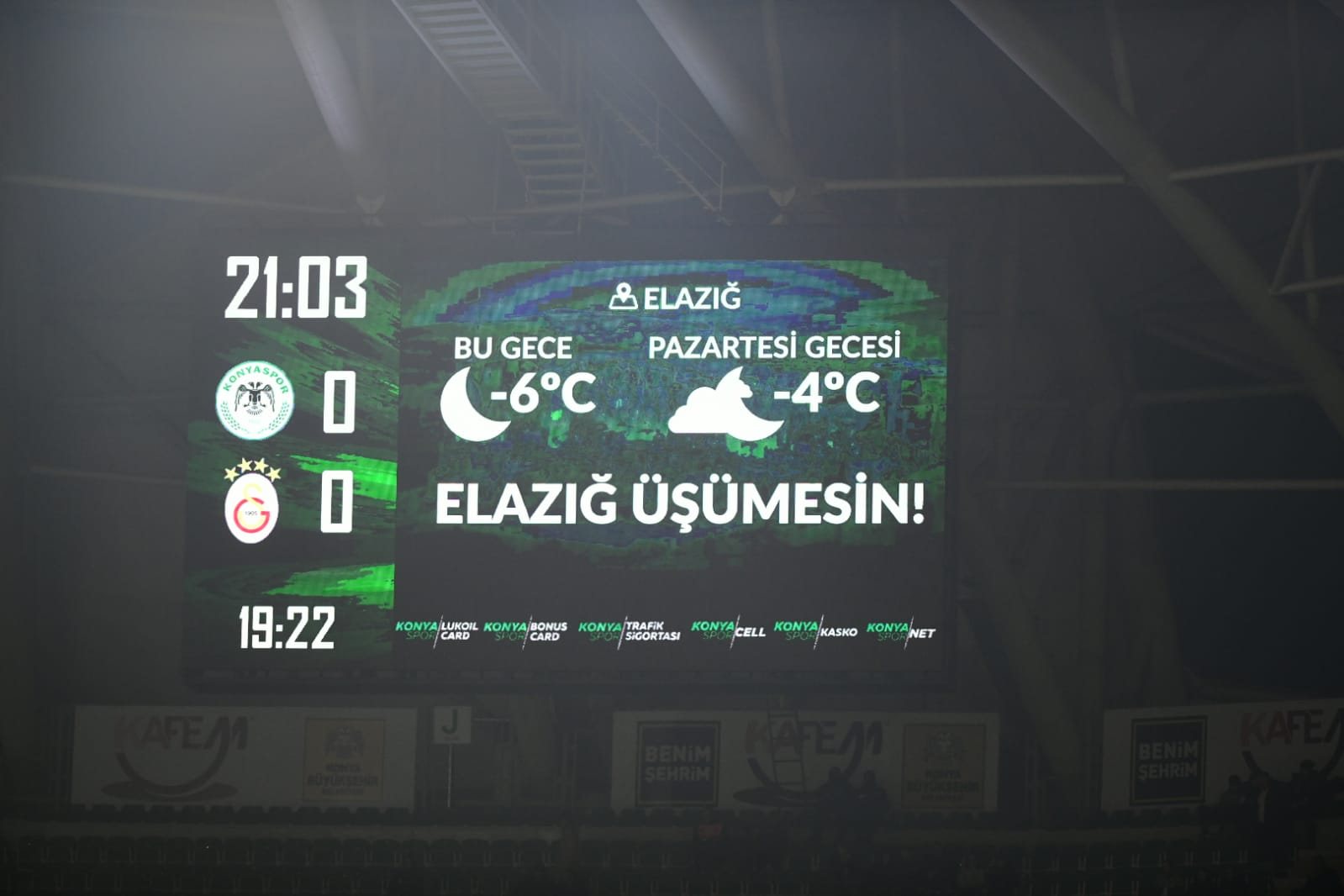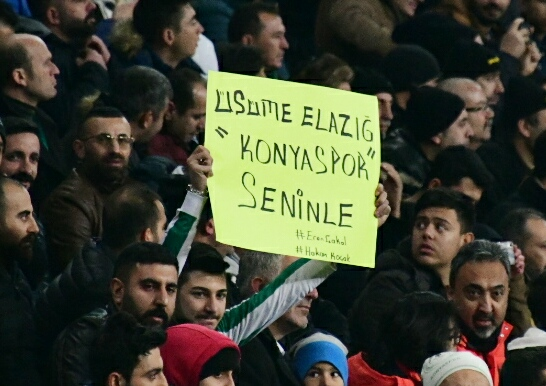 Süper Lig’de 2019-2020 Cemil Usta Sezonu 19.hafta maçında Galatasaray’ı konuk eden İttifak Holding Konyaspor’umuz sahadan 3-0’lık skorla yenik ayrıldı ve haftayı 18 puanla kapattı. Takımımız Konya Büyükşehir Belediyesi Stadyumu’nda saat 19:00’da başlayan ve yaklaşık 35 bin taraftarımızın takip ettiği maça ‘Geçmiş Olsun Elazığ-Malatya Dualarımız Sizinle’ yazılı pankartla çıkarken, karşılaşma sırasında skorboardda ‘Milletimizin Başı Sağolsun’ yazısı yayınlandı. Maça iyi başlayan takımımız Amir Hadizahmetovic, Rogerio Thuram ve Nejc Skubic ile gole yaklaşmasına rağmen sonuç alamazken, rakip ilk yarıyı Radamel Falcao’nun 26 ve Emre Akbaba’nın 39.dakikalarda attığı gollerle 2-0 önde tamamladı. İkinci yarıda sonradan oyuna giren Levan Shengelia, Alper Uludağ ve Rogerio Thuram ile fırsatlar bulan yeşil beyazlılarımız, 79.dakikada Adem Büyük’ün golüne engel olamayınca sahadan 3-0’lık skorla mağlup ayrıldı. STAD: Konya Büyükşehir Belediyesi HAKEMLER: Koray Gencerler, Bahattin Duran, Volkan Ahmet Narinç İTTİFAK HOLDİNG KONYASPOR: Serkan Kırıntılı, Nejc Skubic, Selim Ay, Msrin Anicic, Alper Uludağ, Jens Jonsson, Marko Jevtovic (Dk.46 Faruku Miya), Ömer Ali Şahiner, Amir Hadziahmetovic (Dk.59 Leva Shengelia), Erdon Daci (Dk.79 Paolo Hurtado), Rogerio Thuram YEDEKLER: Ertuğrul, Mücahit Atalay, Volkan Fındıklı, Ali Turan, Riad Bajic, Guilherme Sitya, Uğur Demirok TEKNİK SORUMLU: Aykut Kocaman GALATASARAY: Muslera, Mariano, Ahmet Çalık, Donk, Saracchi (Dk.72 Şener Bayraktarlı), Seri, Lemina, Ömer Bayram, Feghouli, Emre Akbaba (Dk.89 Emin Bayram), Falcao (Dk.58 Adem Büyük) YEDEKLER: Okan Kocuk, Selçuk İnan, Belhanda, Linnes, Sekidika, Taylan Antalyalı, Işık Kaan TEKNİK SORUMLU: Fatih Terim SARI KARTLAR: Feghouli, Lemina (Galatasaray) GOLLER: Falcao (Dk.26), Emre Akbaba (Dk.39), Adem Büyük (Dk.79) (Galatasaray)