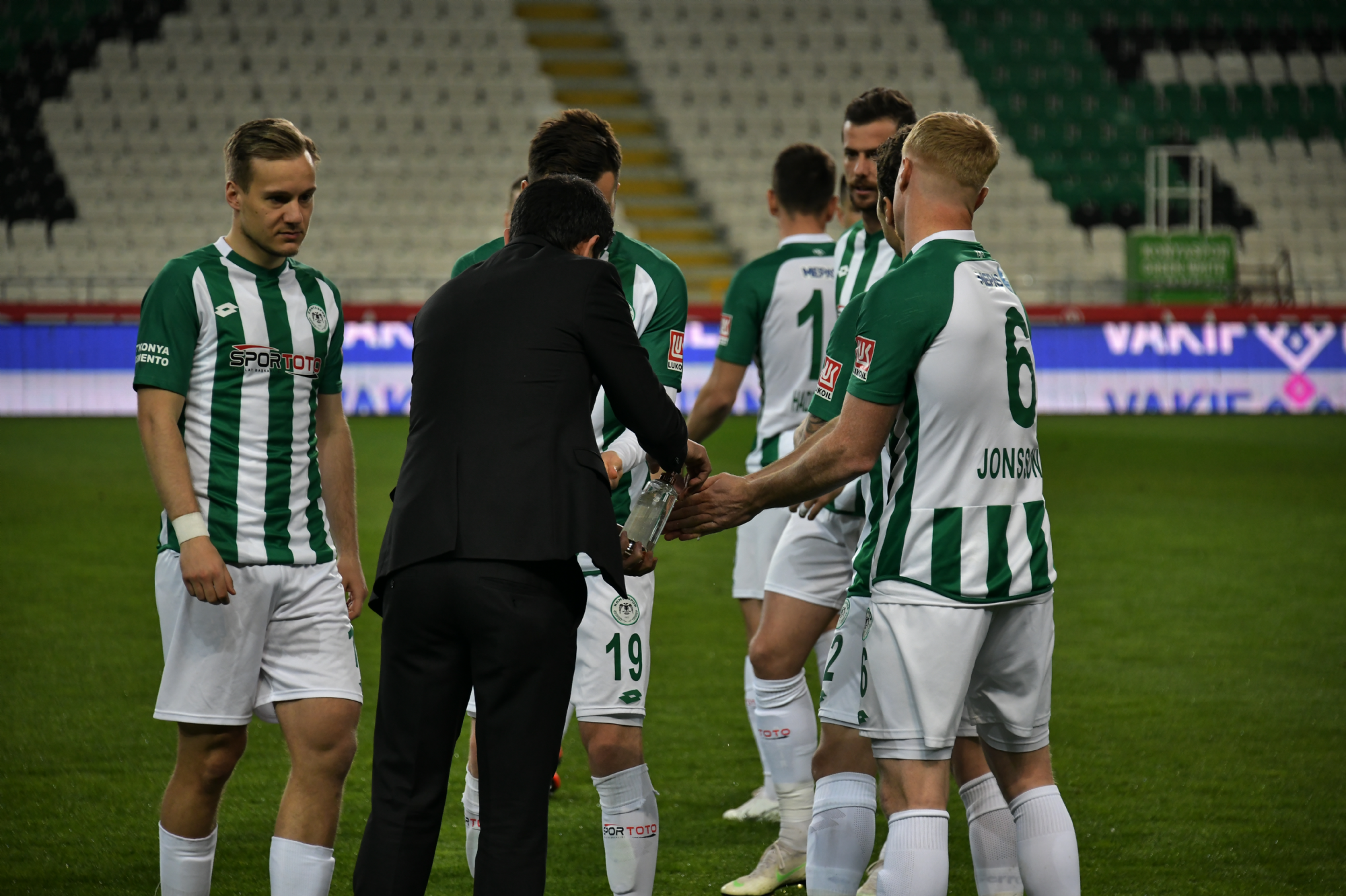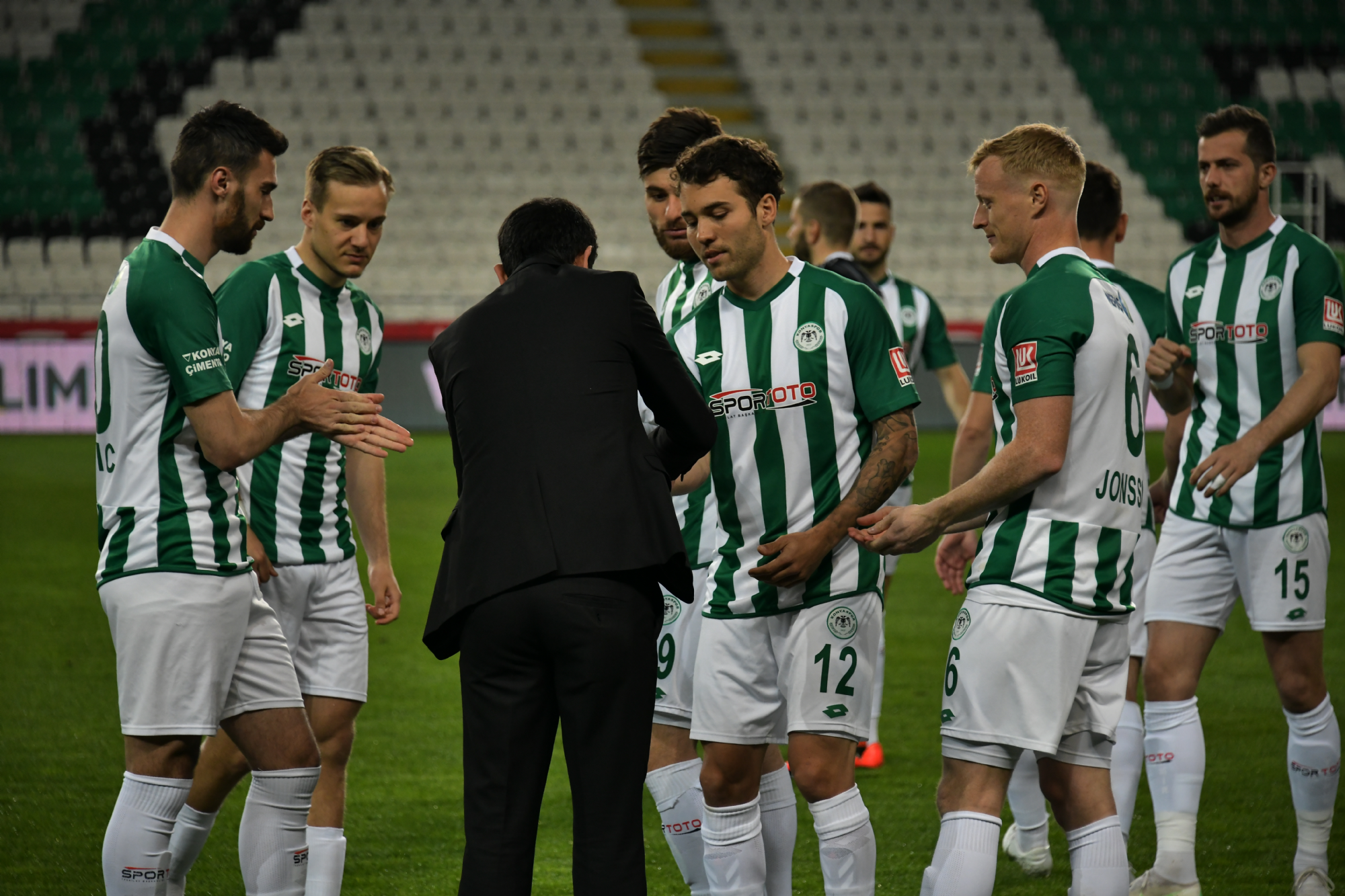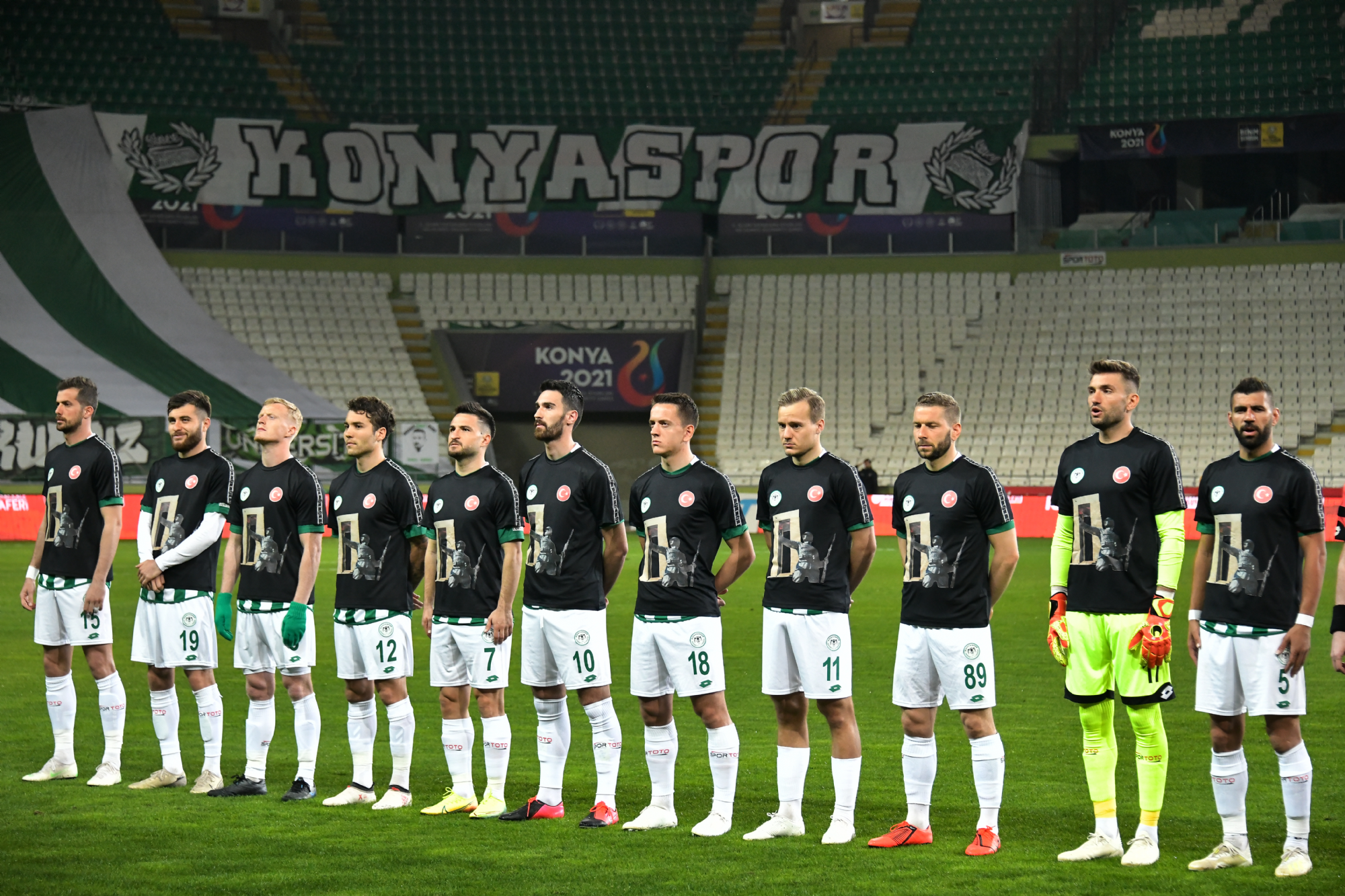 Süper Lig’de 26.hafta maçında Fenerbahçe’yi konuk eden İttifak Holding Konyaspor’umuz, 9 kişi tamamladığı karşılaşmayı Riad Bajic’in 41.dakikada attığı golle 1-0 kazandı. Konya Büyükşehir Belediyesi Stadyumu’nda saat 20:00’da başlayan karşılaşma Kovid19 Koronavirüsüne karşı alınan tedbirler nedeniyle seyircisiz oynandı. Takımımız ısınmaya 18 mart Çanakkale Zaferi Haftası anısına özel tişörtlerle çıkarken, maç öncesi seremonide hakemler ve iki takım oyuncuları ‘Dirilişten Kurtuluşa bir Duruştur Çanakkale’ yazılı pankartla çıktı. Maça hızlı başlayan takımımızda Ömer Ali Şahiner’in kafa vuruşunda çizgiyi geçen top hakem Hüseyin Göçek tarafından VAR hakemlerinin incelemesi sonrasında çizgiyi geçmedi şeklinde ifade edilince takımımızın nizami golü iptal edildi. Etkili futbolunu sürdüren İttifak Holding Konyaspor’umuz, 41.dakikada Riad Bajic’in güzel golüyle 1-0 öne geçti ve ilk yarı bu skorla tamamlandı. İkinci yarıya da hızlı başlayan ve pozisyonlar bulan İttifak Holding Konyaspor’umuzda önce 67.dakikada Nejc Skubic, ardından da 76.dakikada Ömer Ali Şahiner ikinci sarı karttan kırmızı kart ile oyun dışı kalınca takımımız maçı 9 kişi tamamlamak zorunda kaldı. 9 kişi ile iyi mücadele eden ve rakibe pozisyon vermeyen İttifak Holding Konyaspor’umuz mücadeleden 1-0 galip ayrılmasını bildi. Takımımız bu önemli galibiyetle haftayı 26 puanla tamamladı. STAD: Konya Büyükşehir Belediyesi HAKEMLER: Hüseyin Göçek, Esat Sancaktar, Serkan Ok İTTİFAK HOLDİNG KONYASPOR: Ertuğrul, Nejc Skubic, Selim Ay, Uğur Demirok, Guilherme Sitya, Jens Jonsson, Amir Hadziahmetovic, Ömer Ali Şahiner, Levan Shengelia (Dk.87 Marko Jevtovic), Deni Milosevic (Dk.81 Alper Uludağ), Riad Bajic (Dk.79 Ali Turan) YEDEKLER: Mücahit Atalay, Volkan Fındıklı, Paolo Hurtado, Robert Mak, Ferhat Öztorun, Erdon Daci, Rogerio Thuram TEKNİK SORUMLU: Bülent Korkmaz FENERBAHÇE: Harun, Isla, Jailson, Luis Gustavo, Hasan Ali Kaldırım, Emre Belözoğlu (Dk.64 Mevlüt Erdinç), Tolga Ciğerci (Dk.83 Ferdi Kadıoğlu), Garry Rodriques, Zajc, Mehmet Ekici (Dk.46 Deniz Türüç), Vedat Muriqi YEDEKLER: Erten, Ertuğrul, Falette, Murat Sağlam, Cenk, Ömer Faruk TEKNİK SORUMLU: Zeki Murat Göle KIRMIZI KARTLAR: Nejc Skubic (Dk.67), Ömer Ali Şahiner (Dk.76) (İttifak Holding Konyaspor) SARI KARTLAR: Selim Ay, Uğur Demirok, Ertuğrul Taşkıran (İttifak Holding Konyaspor), Hasan Ali Kaldırım, Garry Rodriques (Fenerbahçe) GOL: Riad Bajic (Dk.41) (İttifak Holding Konyaspor)