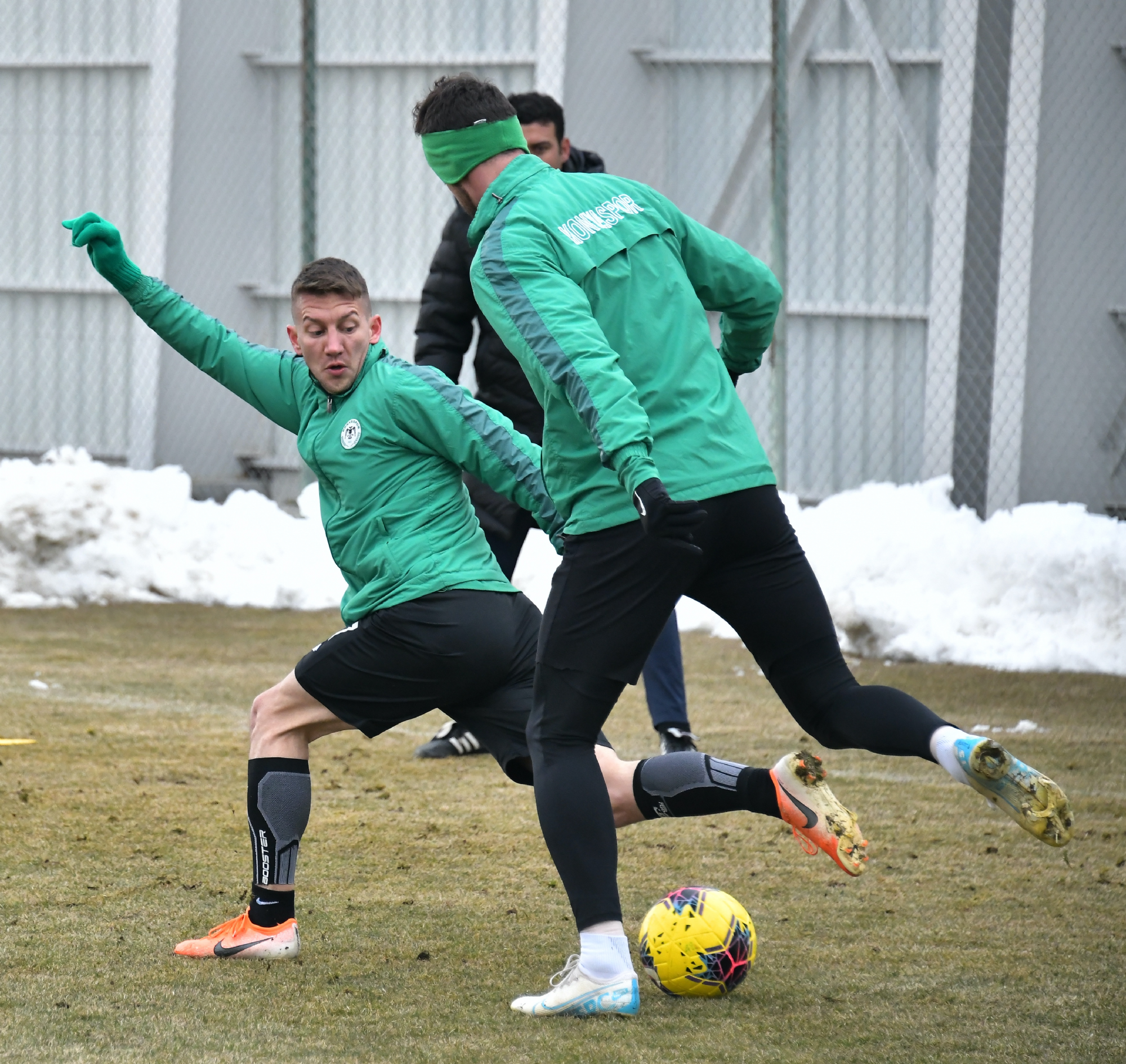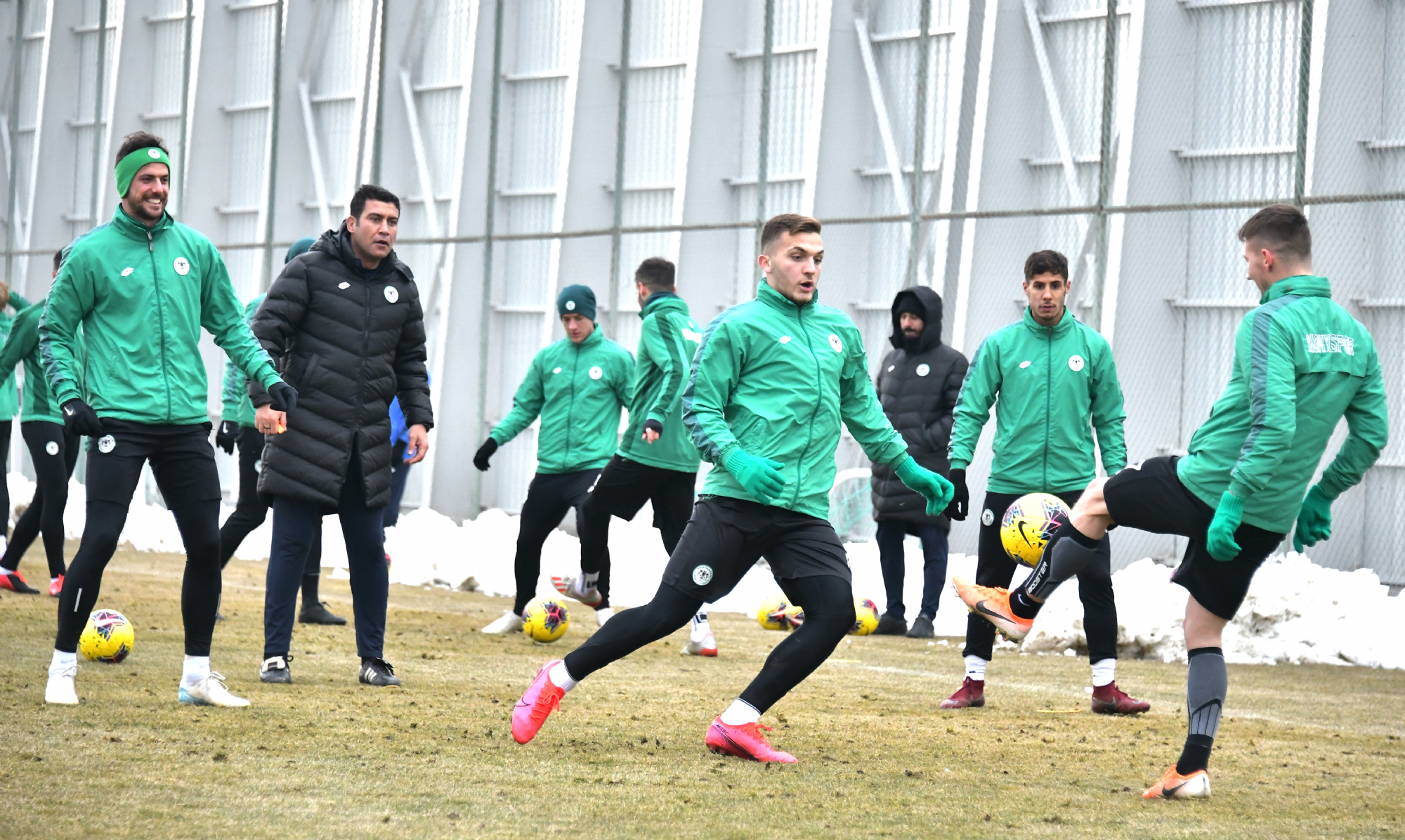 Süper Lig’de 2019-2020 Cemil Usta Sezonu 22.hafta maçında 15 Şubat Cumartesi günü Göztepe’yi konuk edecek İttifak Holding Konyaspor’umuz, bir günlük aradan sonra yapılan antrenmanla hazırlıklarına yeniden başladı. Kayacık Tesisleri’mizde alt yapı antrenörlerimiz Soner Demirel, Çağdaş Çankaya ve kaleci antrenörü Yunus Emre Sürmeligöz yönetiminde gerçekleşen antrenmana tedavilerine devam edilen ve takımdan ayrı çalışan Ali Karakaya, Faruku Miya, Ömer Ali Şahiner, Serkan Kırıntılı ile Volkan Fındıklı katılmadı. Isınma hareketleri ile başlayan antrenman topla yapılan çabukluk çalışması ve 5’e 2 ile devam etti. Oyuncularımız topla oyunun ardından yapılan çift kale maç ile antrenmanı tamamladı. Antrenman Fotoğraflarının Tamamı İçin: https://we.tl/t-8Y126Y0vhn