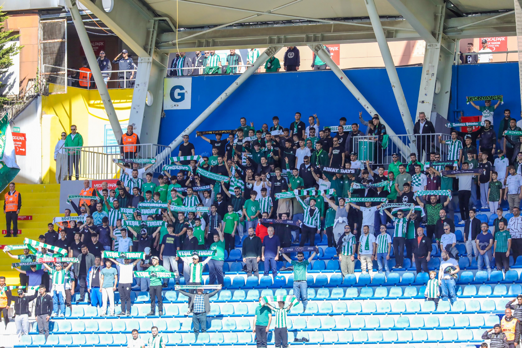 Tümosan Konyaspor’umuz, Trendyol Süper Lig’in 8’inci hafta maçında Kasımpaşa’ya konuk oldu. Recep Tayyip Erdoğan Stadyum’unda oynanan karşılaşma 1-1 eşitlikle tamamlandı. Teknik Direktörümüz Recep Uçar karşılaşmaya; Deniz Ertaş, Yhoan Andzouana, Adil Demirbağ, Uğurcan Yazğılı (Dk. 58 Josip Ćalušić), Guilherme Sitya, Marko Jevtovic, Melih İbrahimoğlu (Dk. 89 Ufuk Akyol), Alassane Ndao (Dk. 58 Marius Ștefănescu), Pedrinho (Dk. 84 Morten Bjørlo), Jackson Muleka (Dk. 89 Kaan Akyazı) ve Umut Nayir ilk onbiriyle başladı. İlk yarıda Jackson Muleka’nın golüyle devreyi 1-0 önde kapattık. İkinci yarıda ev sahibi ekip, 72’nci dakikada kaydettiği golle eşitliği yakaladı ve müsabaka 1-1 sona erdi. Takımımız, çalışmalarına 9 Ekim Perşembe günü saat 18.30 ’da yapacağı antrenman ile başlayacak.