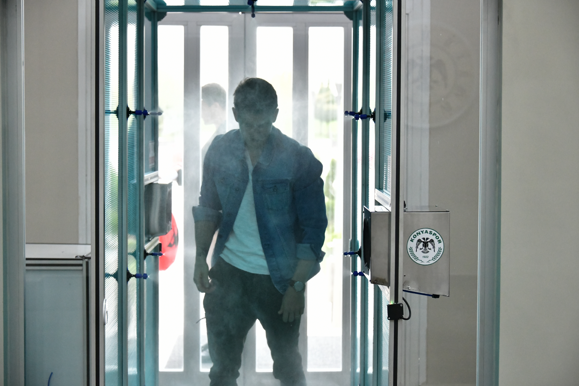 Kulübümüz, Futbola Dönüş Protokolü kapsamında TFF Sağlık Kurulu’nun önerilerini hızla hayata geçiriyor. Teknik heyet, futbolcu, sağlık ekibi, malzeme sorumluları ve kulüp personeli için Kayacık Tesislerimizin ana giriş kapısına, virüslerin yayılmasını önlemede önemli etkiye sahip olan ‘ Dezenfekte Kabini ’ yerleştirildi. Hareket sensörleri bulunan kabine girenlerin üzerlerindeki kıyafetler ve ayakkabılar yüksek basınçla dezenfekte edilecek.