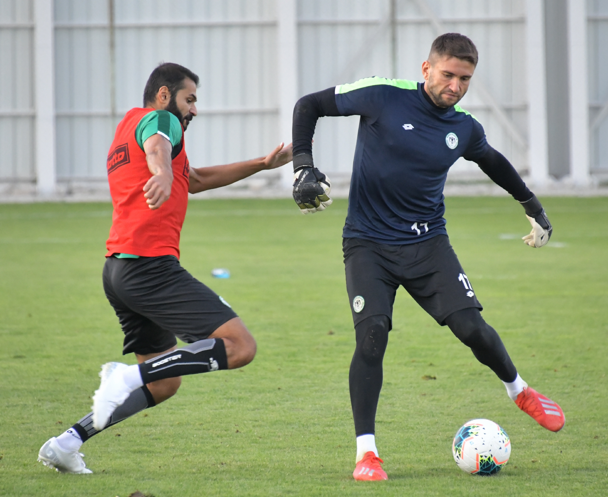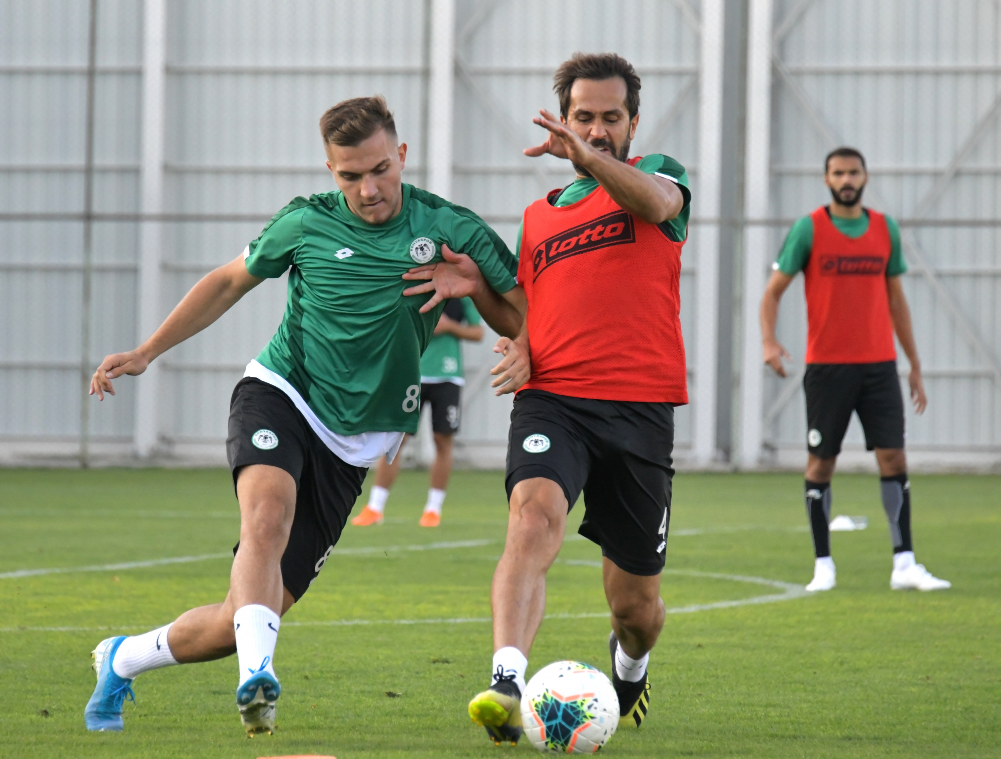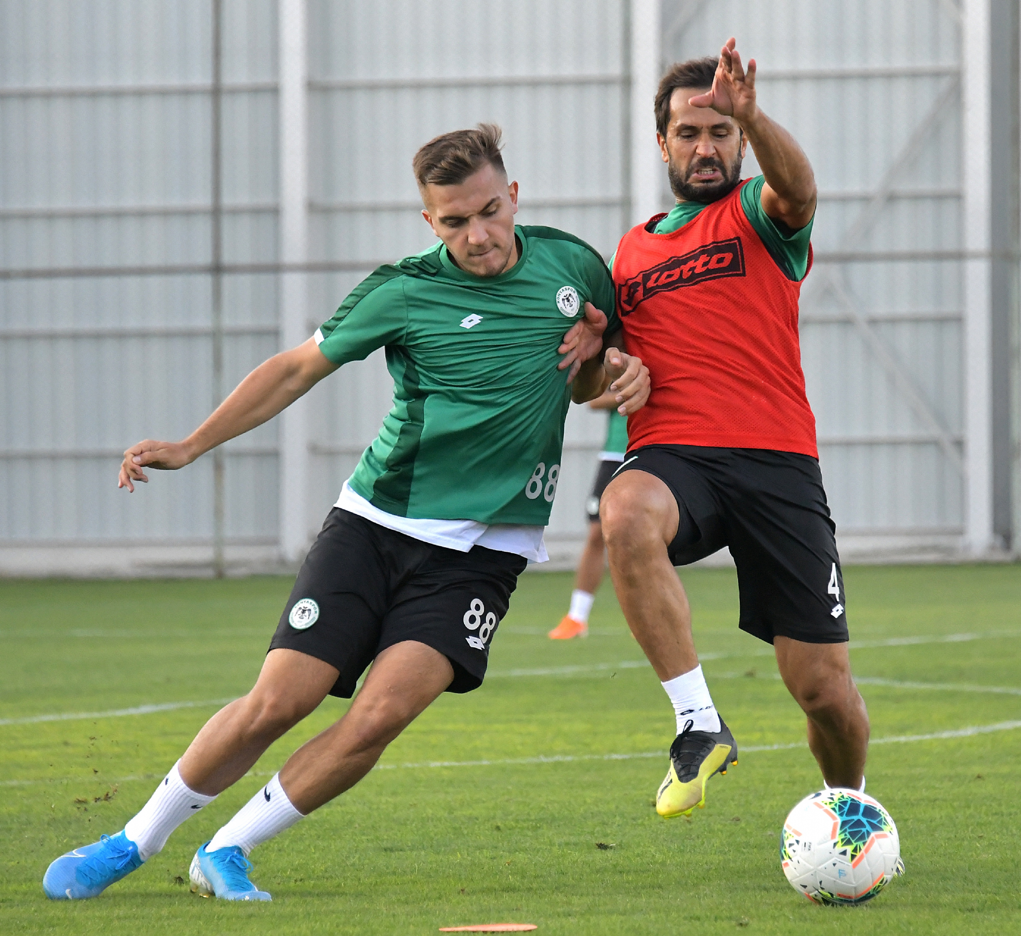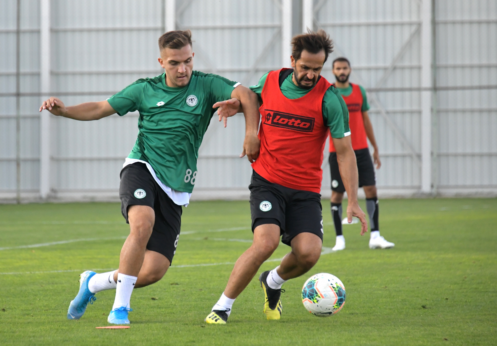 20 Eylül Cuma günü Süper Lig 2019-2020 Cemil Usta Sezonu 5.hafta açılış maçında Göztepe ile karşılaşacak Konyaspor’umuz, günü öğleden sonra yaptığı antrenmanla değerlendirdi. Teknik Direktörümüz Aykut Kocaman ve yardımcı antrenörlerimiz yönetiminde Kayacık Tesisleri’mizde yapılan antrenmana takımdan ayrı çalışan ve tedavilerine devam edilen Ali Çamdalı ile Paolo Hurtado katılmadı. Koşu ve ısınma hareketleri ile başlayan antrenman pas çalışması ile devam etti. Oyuncularımız şut ve gol çalışmasının ardından dönüşümlü olarak oynanan 5’e 5 turnuva maçları ile antrenmanı tamamladı. Antrenman maçının galibi Selim Ay’ın kaptanlığını yaptığı Yeşil Takım oldu.