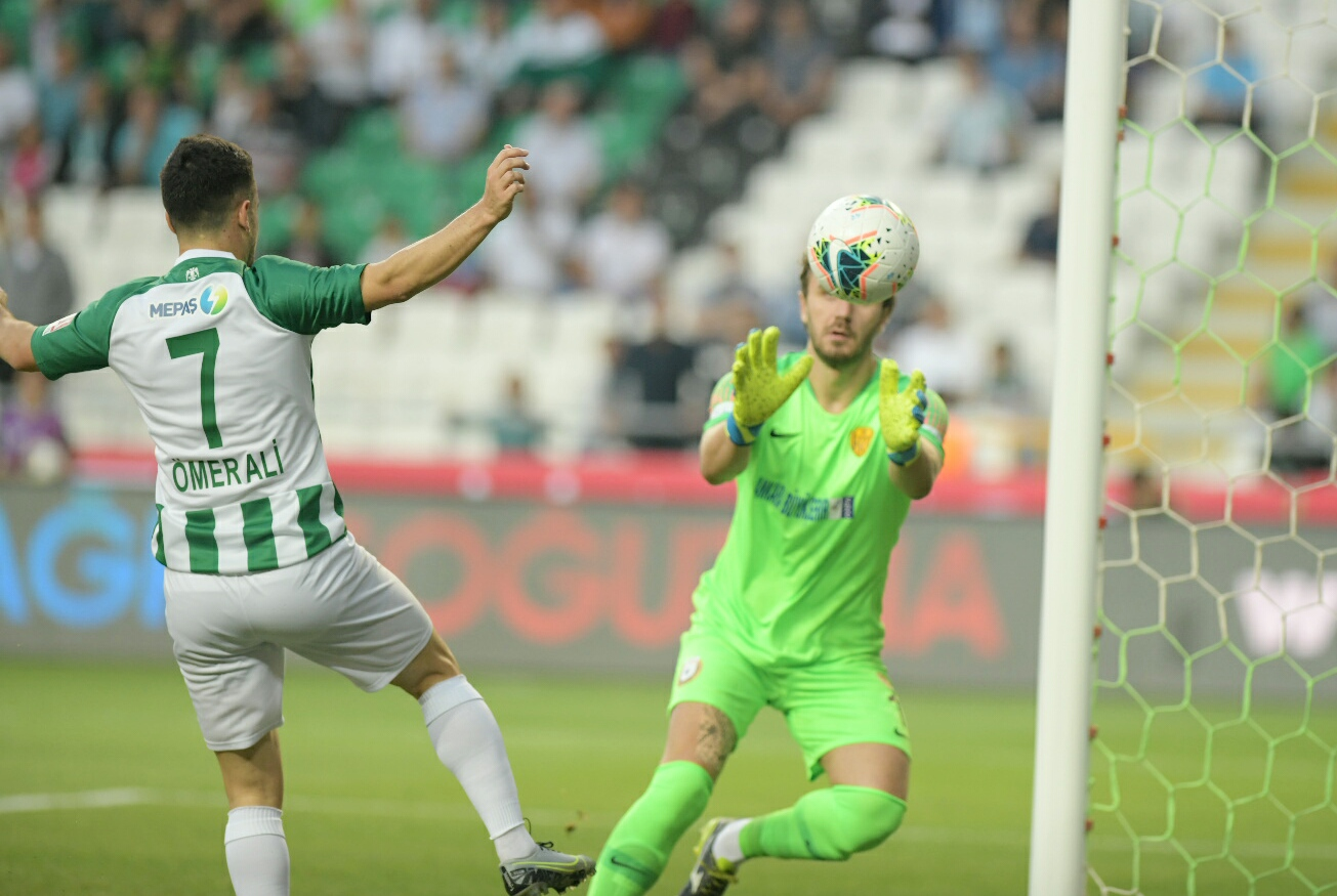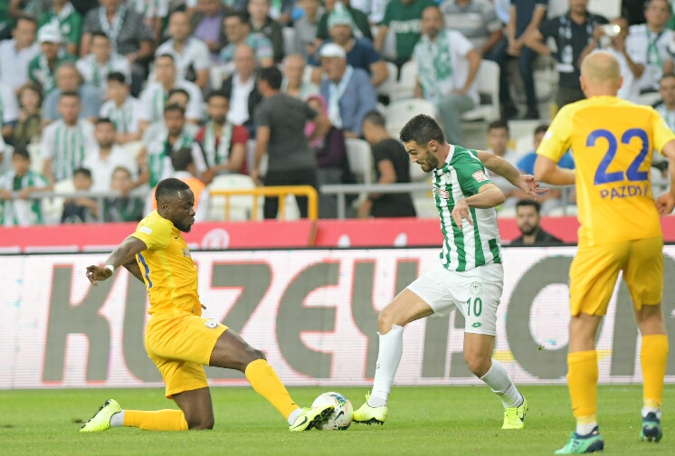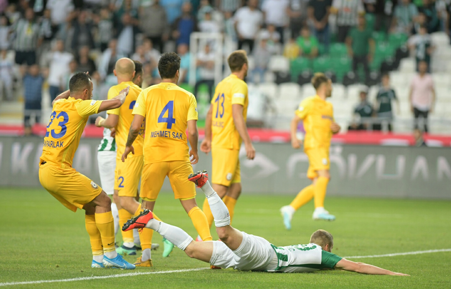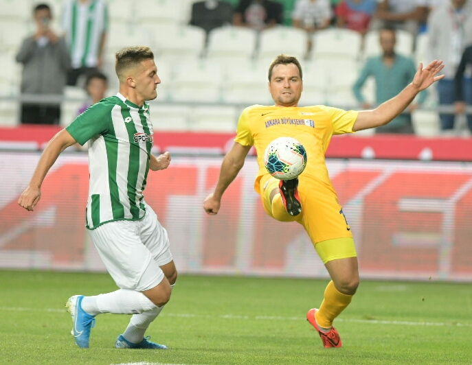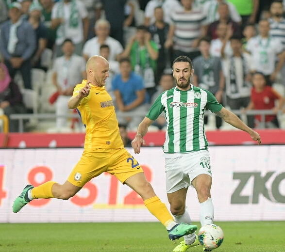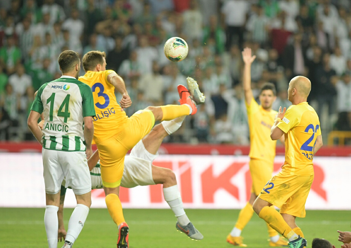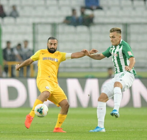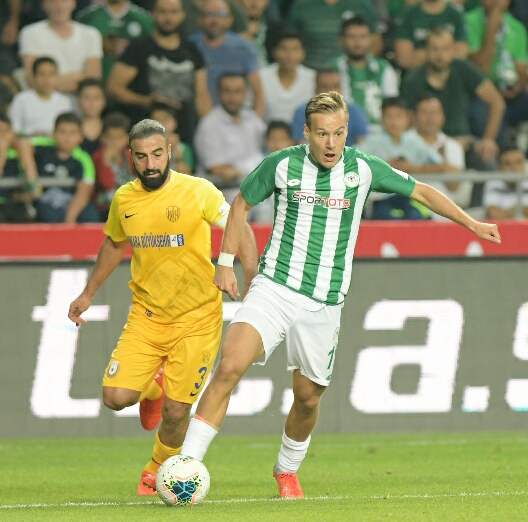 Süper Lig 2019-2020 Cemil Usta Sezonu 1.hafta maçında MKE Ankaragücü’nü konuk eden takımımız, bir topunun direkten döndüğü ve çok sayıda fırsat yakaladığı ama değerlendiremediği mücadeleden 0-0’lık beraberlikle ayrıldı. Konya Büyükşehir Belediyesi Stadyumu’nda saat 19:15’de başlayan karşılaşmayı yaklaşık 25 bin taraftarımız takip ederken, her iki takımda sahaya AFAD’ın ‘Afetlere Hazır Ol’ yazılı pankartlarıyla çıktı. Mücadelenin ilk yarısında rakip kalede daha etkili olan takımımızda 15.dakikada Ömer Ali Şahiner’in kafa vuruşu direkten oyun alanına dönerken, Riad Bajic ve Nejc Skubic ile yakalanan fırsatlar golle sonuçlanmayınca ilk yarı başladığı gibi golsüz sona erdi. Etkili oyununu ikinci yarıda da sürdüren Konyaspor’umuzda Deni Milosevic’in iki, Mücahit Can Akçay’ın bir şutunda kaleci Korcan gole izin vermezken, takımımız Riad Bajic, Erdon Daci ile girdiği pozisyonlarda sonuca gidemedi. Gol sesi çıkmayan mücadele 0-0 berabere sona erdi ve Konyaspor’umuz, Süper Lig 2019-2020 Cemil Usta Sezonu’na 1 puanla başlangıç yaptı. STAD: Konya Büyükşehir Belediyesi HAKEMLER: Bülent Birincioğlu, Mehmet Metin, Mehmet Kısal KONYASPOR: Serkan Kırıntılı, Nejc Skubic, Ali Turan, Marin Anicic, Ferhat Öztorun (Dk.73 Mücahit Can Akçay), Marko Jevtovic, Jens jonsson, Ömer Ali Şahiner, Erdon Daci, Deni Milosevic (Dk.79 Ali Yaşar), Riad Bajic YEDEKLER: Ertuğrul, Mücahit Atalay, Selim Ay, Ali Çamdalı, Alper Uludağ, Ali Karakaya, Yevhen Opanasenko, Petar Filipovic TEKNİK SORUMLU: Aykut Kocaman MKE ANKARAGÜCÜ: Korcan, Kıtsıou, Kulusic, Pazdan, Mehmet Sak (Dk.87 Cebrail), Moke (Dk.86 Fathy), Canteros, Aydın Karabulut (Dk.77 Sadaev), İlhan Parlak, Orgıll YEDEKLER: Furkan, Yalçın Ayhan, Alihan, Pinto, Ender, Ahmet Can, Hasan Kaya TEKNİK SORUMLU: Adnan Erkan SARI KARTLAR: İlhan Parlak, Ricardo Fathy (MKE Ankaragücü) GOL: Yok
