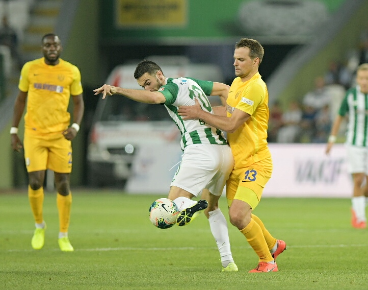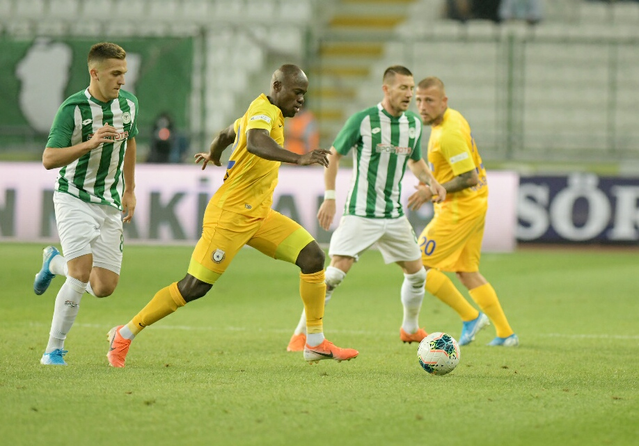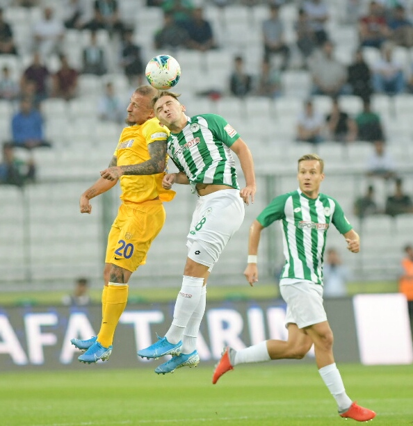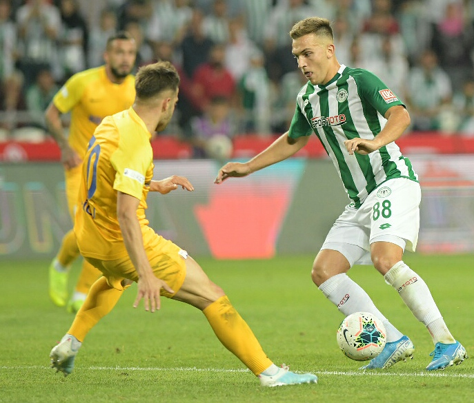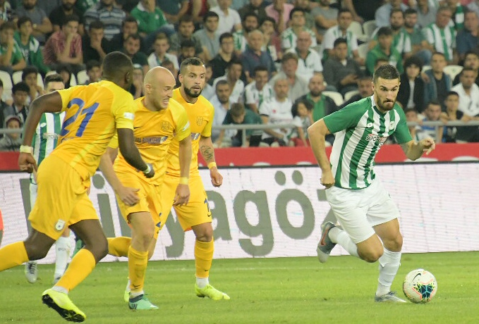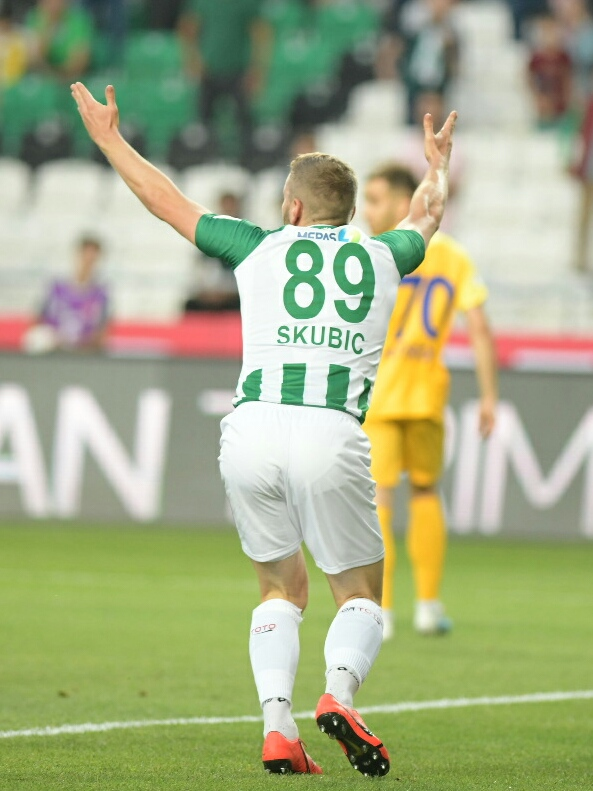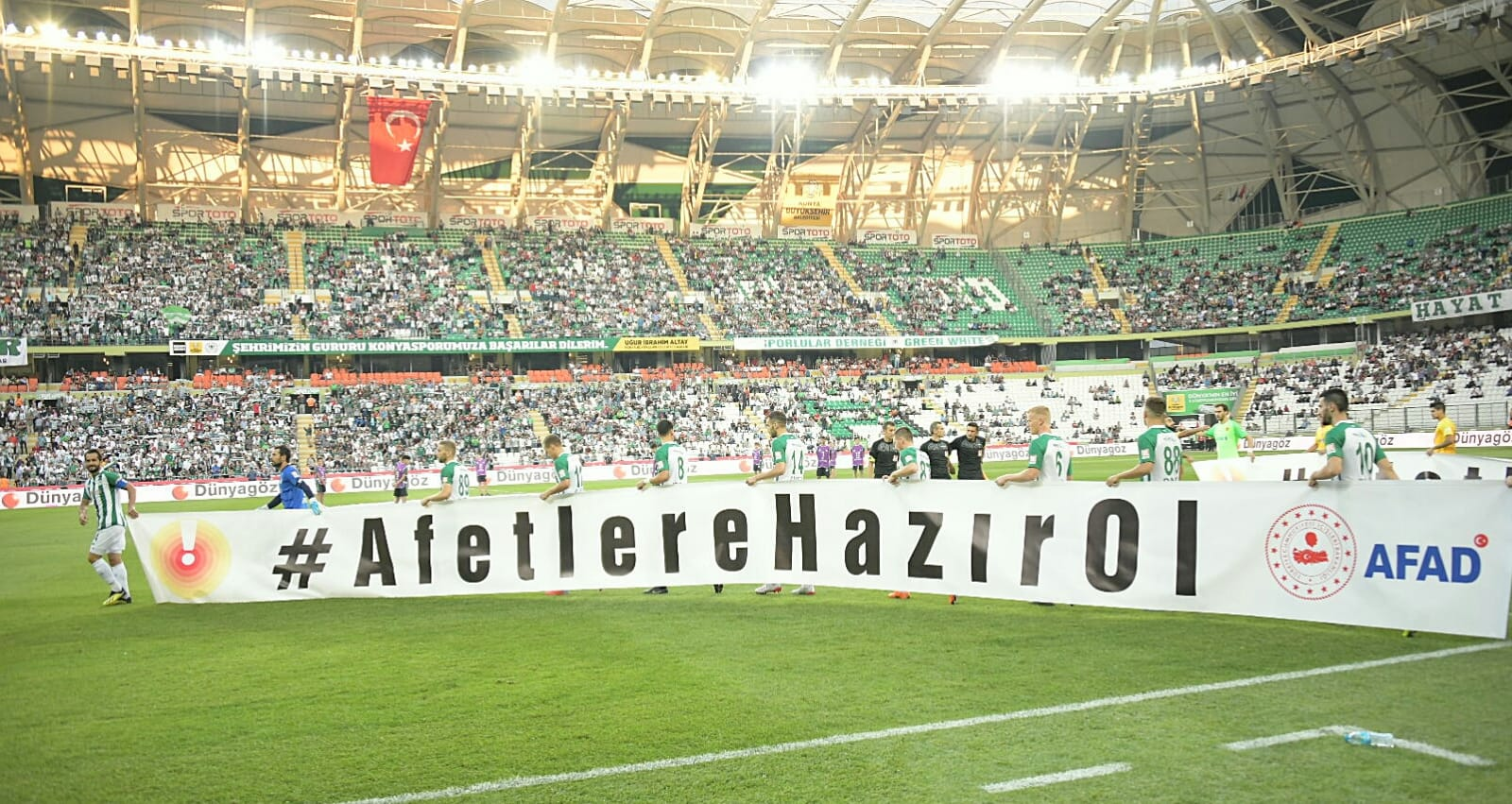 Süper Lig 2019-2020 Cemil Usta Sezonu 1.hafta maçında MKE Ankaragücü’nü konuk eden takımımız, bir topunun direkten döndüğü ve çok sayıda fırsat yakaladığı ama değerlendiremediği mücadeleden 0-0’lık beraberlikle ayrıldı. Konya Büyükşehir Belediyesi Stadyumu’nda saat 19:15’de başlayan karşılaşmayı yaklaşık 25 bin taraftarımız takip ederken, her iki takımda sahaya AFAD’ın ‘Afetlere Hazır Ol’ yazılı pankartlarıyla çıktı. Mücadelenin ilk yarısında rakip kalede daha etkili olan takımımızda 15.dakikada Ömer Ali Şahiner’in kafa vuruşu direkten oyun alanına dönerken, Riad Bajic ve Nejc Skubic ile yakalanan fırsatlar golle sonuçlanmayınca ilk yarı başladığı gibi golsüz sona erdi. Etkili oyununu ikinci yarıda da sürdüren Konyaspor’umuzda Deni Milosevic’in iki, Mücahit Can Akçay’ın bir şutunda kaleci Korcan gole izin vermezken, takımımız Riad Bajic, Erdon Daci ile girdiği pozisyonlarda sonuca gidemedi. Gol sesi çıkmayan mücadele 0-0 berabere sona erdi ve Konyaspor’umuz, Süper Lig 2019-2020 Cemil Usta Sezonu’na 1 puanla başlangıç yaptı. STAD: Konya Büyükşehir Belediyesi HAKEMLER: Bülent Birincioğlu, Mehmet Metin, Mehmet Kısal KONYASPOR: Serkan Kırıntılı, Nejc Skubic, Ali Turan, Marin Anicic, Ferhat Öztorun (Dk.73 Mücahit Can Akçay), Marko Jevtovic, Jens jonsson, Ömer Ali Şahiner, Erdon Daci, Deni Milosevic (Dk.79 Ali Yaşar), Riad Bajic YEDEKLER: Ertuğrul, Mücahit Atalay, Selim Ay, Ali Çamdalı, Alper Uludağ, Ali Karakaya, Yevhen Opanasenko, Petar Filipovic TEKNİK SORUMLU: Aykut Kocaman MKE ANKARAGÜCÜ: Korcan, Kıtsıou, Kulusic, Pazdan, Mehmet Sak (Dk.87 Cebrail), Moke (Dk.86 Fathy), Canteros, Aydın Karabulut (Dk.77 Sadaev), İlhan Parlak, Orgıll YEDEKLER: Furkan, Yalçın Ayhan, Alihan, Pinto, Ender, Ahmet Can, Hasan Kaya TEKNİK SORUMLU: Adnan Erkan SARI KARTLAR: İlhan Parlak, Ricardo Fathy (MKE Ankaragücü) GOL: Yok
