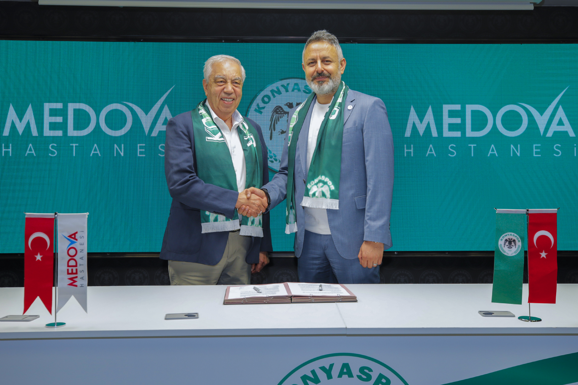 Şehrimizde sağlık sektörünün öncülerinden olan Medova Hastanesi, Süper Lig 2024-25 Sezonunda Konyaspor'umuzun sağlık sponsoru oldu. MEDAŞ Konya Büyükşehir Stadyumu Basın Toplantı Salonu’ndaki imza törenine, Başkanımız Ömer Korkmaz ve Medova Hastanesi Yönetim Kurulu Başkanı Seçkin Olcay ile her iki kurumun yöneticileri katıldı. Konyaspor'umuzun yanında yer alan Medova Hastanesi’ne teşekkür ederek sözlerine başlayan Başkanımız Ömer Korkmaz, şunları kaydetti: "Sağlık sektörünün önde gelen kurumlarından olan Medova Hastanesi, Konyaspor'umuzun yanında yer aldı. Kulübümüze verilen her destek çok kıymetlidir. Sağ olsunlar Medova Hastanesi de bu noktada bizleri yalnız bırakmadı. Şehrimizin iki önemli markasının birleşmesi bizleri fazlasıyla memnun etti. İnşallah yıllarca sürecek Konyaspor - Medova birlikteliği için bugün ilk temeli attığımızı düşünüyorum. “Konya’mızdaki kurum ve kuruluşlar ile oluşturduğumuz bu birliktelikler, kulübümüzü olumlu yönde etkilediğine şahit oluyoruz. Bugün, Süper Lig 2024-2025 sezonunu kapsayan sağlık sponsorluk anlaşmasını imzaladık. Sponsorluk anlaşmasının gelecek sezonlarda devam edeceğini tahmin ediyorum. Medova Hastanesi Yönetim Kurulu Başkanı Sayın Seçkin Olcay başta olmak üzere emeği geçen herkese teşekkür ediyorum. İnanıyorum ki, bu birlikteliğimiz güzel başarılar yaşamamıza vesile olacak.” Medova Hastanesi Yönetim Kurulu Başkanı Seçkin Olcay ise Konyaspor ile işbirliği yapmanın gurur ve heyecanını yaşadıklarının altını çizerek, şöyle devam etti: "Medova Hastanesi, hizmete başladığı 2016 yılından bu yana sağlık alanında gerçekleştirdiği ilklerle ve yeniliklerle Konya halkına yalnızca sağlık hizmeti vermekle kalmamış; çevreye, topluma, eğitime ve spora verdiği desteklerle birçok önemli projeye katkıda bulunmuştur. Bu kapsamda 2024-25 sezonu için Konyaspor futbol kulübüyle sağlık sponsorluğu anlaşması imzalamış bulunmaktayız. Böylelikle hem maddi hem de vereceğimiz sağlık hizmetleriyle kulübümüzün elde edeceği başarılarda bir nebze olsun pay sahibi olmak bizleri gururlandıracaktır. Umuyorum ki bu iş birlikteliğimizi daha da ileriye taşıyacak adımları zaman içerisinde atmaya devam edeceğiz." İmza töreni, forma takdimi ve stadyum gezisi ile sona erdi.