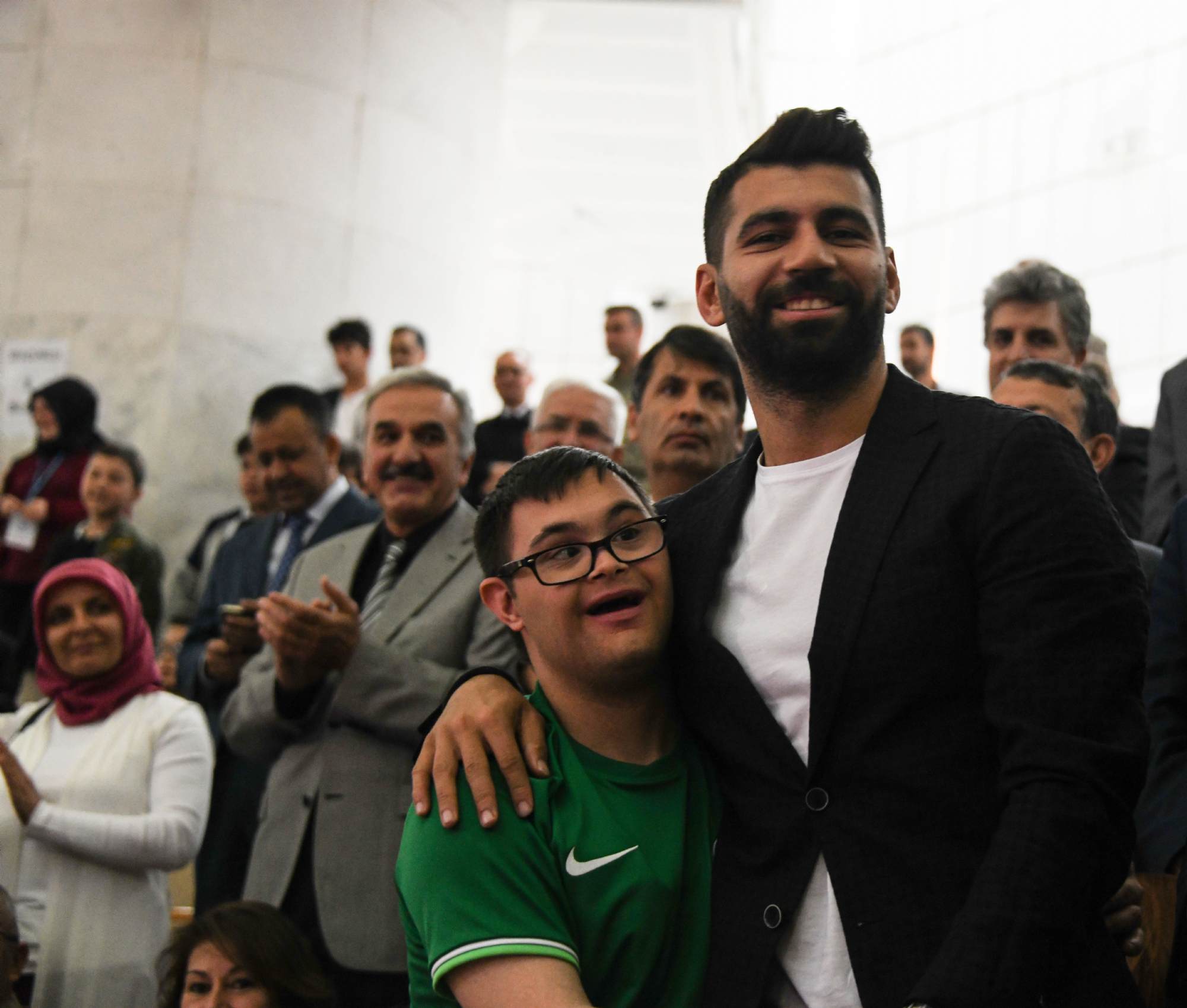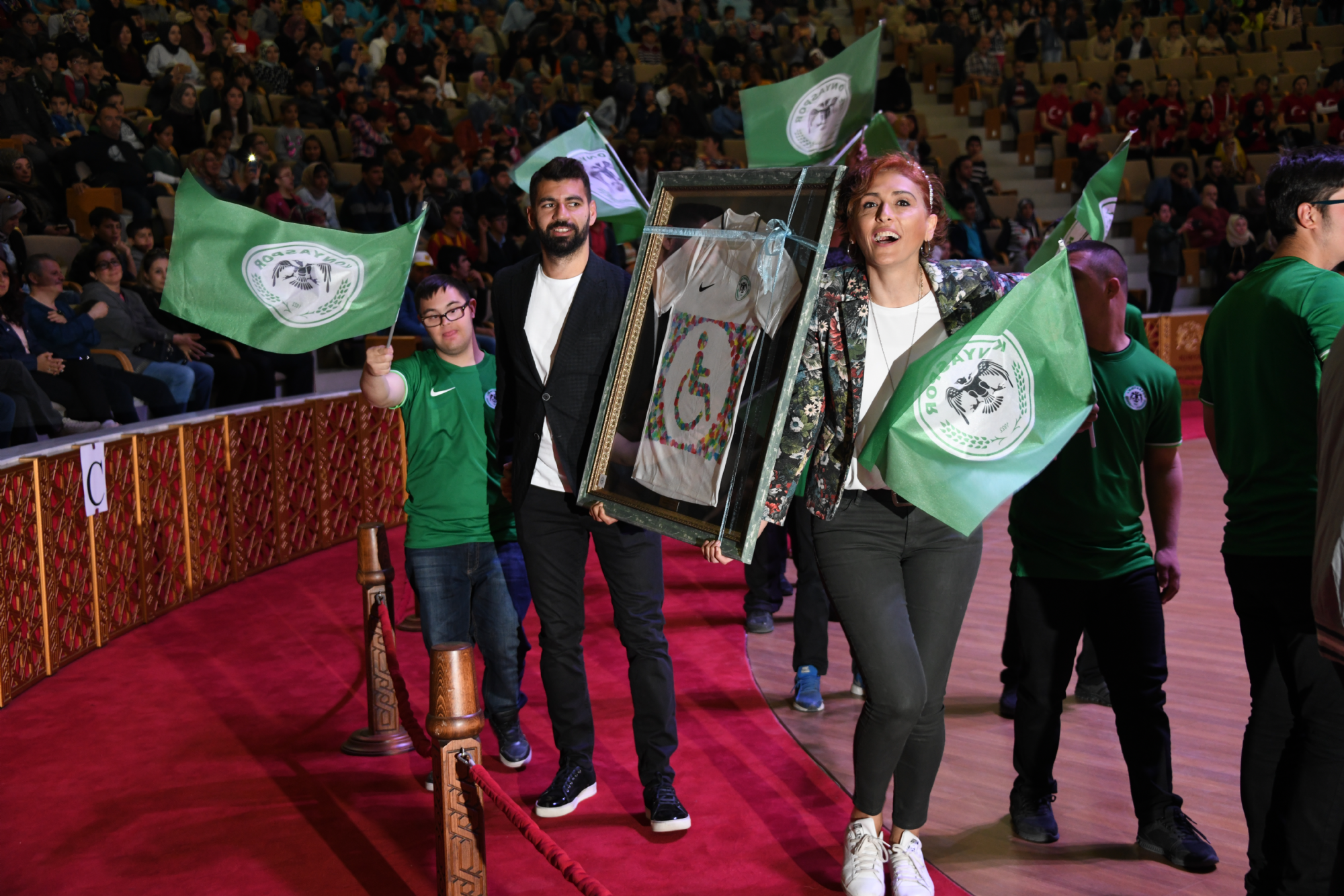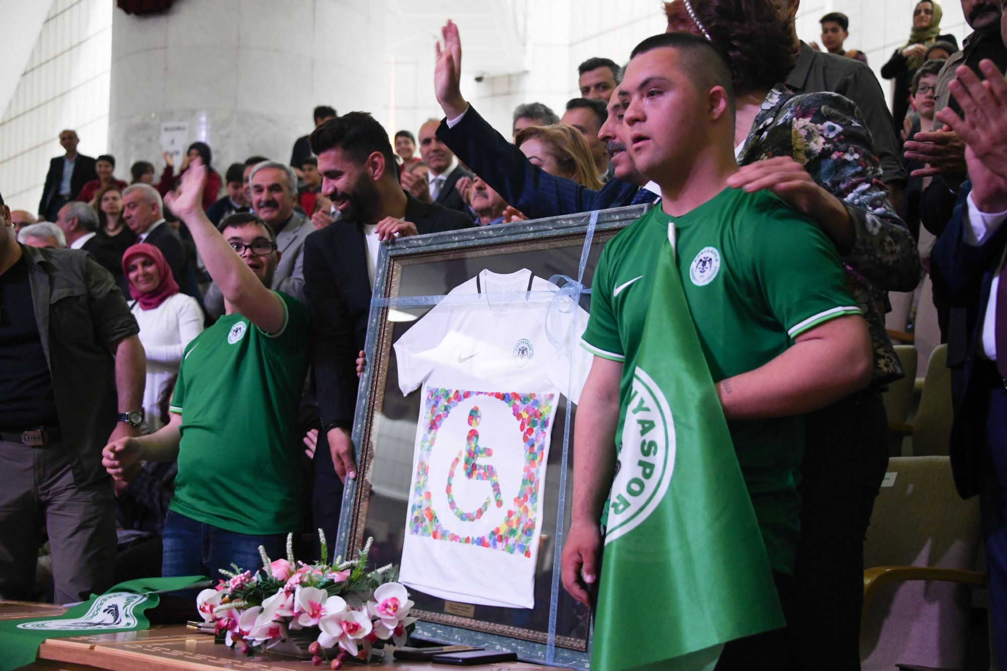 Takım kaptanlarımızdan Selim Ay Konya Valiliği tarafından organize edilen 10-16 Mayıs Engelliler Haftası etkinliklerine katıldı. Mevlana Kültür Merkezi’nde gerçekleşen programda Melike Hatun Özel Eğitim Meslek Okulu öğrencilerinin hazırladığı Konyaspor temalı gösteri katılımcılar tarafından alkışlar eşliğinde izlendi. Takım kaptanlarımızdan Selim Ay’ın da katıldığı programın sonunda özel eğitim gören tüm öğrencilerin parmak baskısıyla hazırlanan Atiker Konyaspor forması, gösteride yer alan çocuklar ve kaptanımız tarafından Konya Valisi Cüneyit Orhan Toprak’a hediye edildi. Öğrencilerin yoğun ilgi gösterdiği futbolcumuz Selim Ay daha sonra gelen istekleri kırmadı ve programı izlemek için gelen çocuklar ve taraftarlarımızla fotoğraf çektirdi.