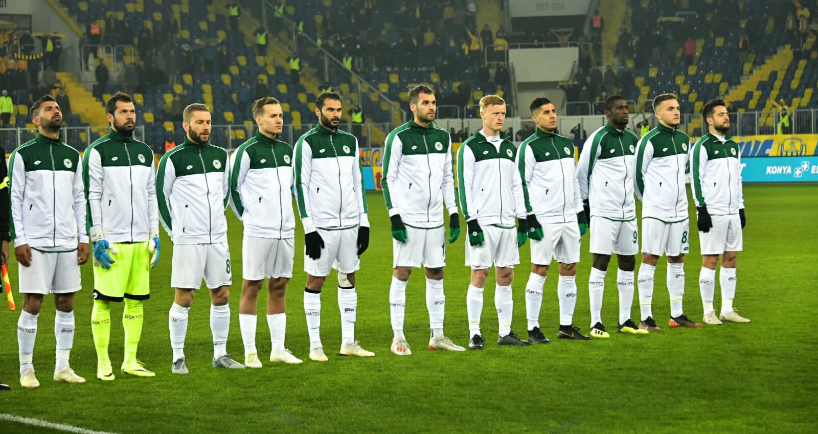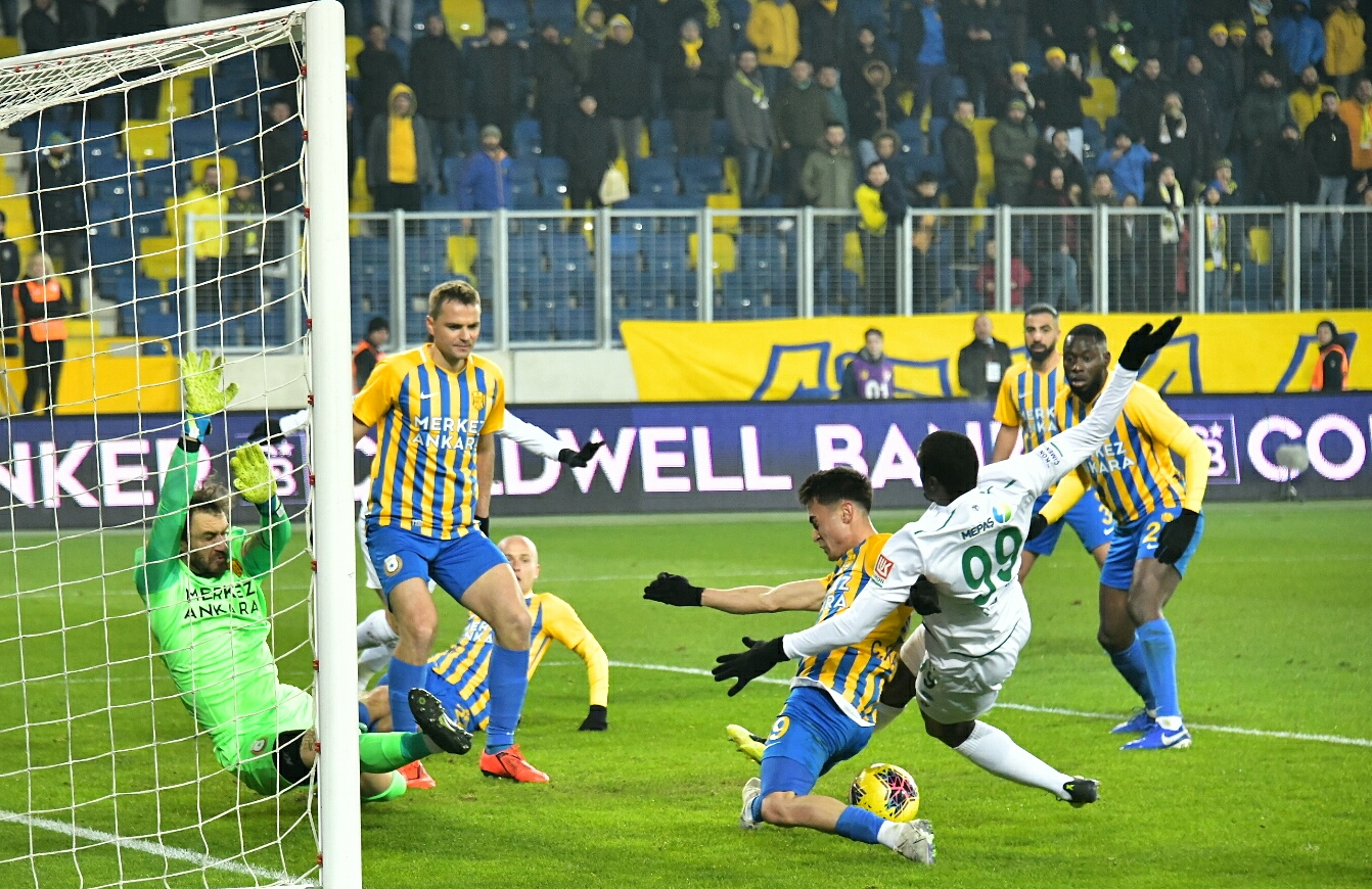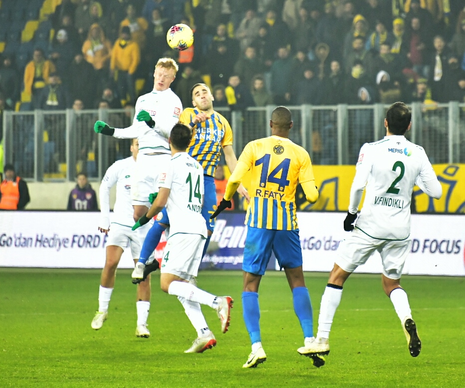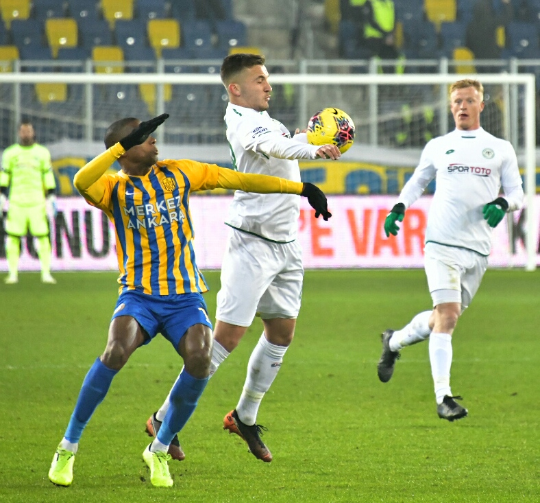 İttifak Holding Konyaspor’umuz, Süper Lig 2019-2020 Cemil Usta Sezonu ikinci devre açılış maçında konuk olduğu MKE Ankaragücü’nü 90+2.dakikada Levan Shengelia’nın attığı golle 1-0 mağlup etti. Eryaman Stadyumu’nda saat 20:00’da başlayan ve yaklaşık 500 taraftarımızın da takip ederek takımımızı yalnız bırakmadığı karşılaşmada yeşil beyazlılarımız ilk yarıda yeni transferimiz Rogerio Thuram ve Deni Milosevic ile yakaladığı fırsatları değerlendiremedi ve ilk yarı 0-0 sona erdi. İkinci yarıda da etkili oyununu sürdüren İttifak Holding Konyaspor’umuzda Ömer Ali Şahiner’in yakın mesafeden vuruşunda kaleci Korcan, Farkumu Miya’nın kafa vuruşunda ise direk gole izin vermedi. Takımımız 87.dakikada Ömer Ali Şahiner’in yerine oyuna giren Levan Shengelia’nın 90+2.dakikada Riad Bajic’in pasını ağlara göndermesiyle 1-0 öne geçti. Son anlarda direk dibinden çok güzel bir kurtarışa imza atan kalecimiz Serkan Kırıntılı maçın sonucunu belirledi ve İttifak Holding Konyaspor’umuz 18.hafta maçında deplasmanda MKE Ankaragücü’nü 1-0 yendi. Yeşil beyazlılarımız 10 maç aradan sonra galip gelirken puanını 18’e çıkarttı. STAD: Eryaman HAKEMLER: Alper Ulusoy, Samet Çavuş, Abdullah Bora Özkara MKE ANKARAGÜCÜ: Korcan, Cebrail, Pazdan, Kulusic, Tiego Pinto, Sedat Ağçay (Dk.69 Hasan Kaya), Wilfred Moke (Dk.46 Alper Önal), Faty (Dk.87 Canteros), Scarione, Kitsiou, İlhan Parlak YEDEKLER: Yiğit, Kaan, Alihan, Mahmut, Ender, Sıtkı Ferdi, Sadaev TEKNİK SORUMLU: Mustafa Kaplan İTTİFAK HOLDİNG KONYASPOR: Serkan Kırıntılı, Nejc Skubic, Selim Ay, Marin Anicic, Alper Uludağ, Jens Jonsson, Volkan Fındıklı, Ömer Ali Şahiner (Dk.87 Levan Shengelia), Deni Milosevic, Erdon Daci (64 Faruku Miya), Rogerio Thuram (Dk.81 Riad Bajic) YEDEKLER: Ertuğrul, Mücahit Atalay, Marko Jevtovic, Uğur Demirok, Amir Hadziahmetovic, Leonard Zuta, Ali Karakaya TEKNİK SORUMLU: Aykut Kocaman SARI KART: Deni Milosevic (İttifak Holding Konyaspor) GOL: Levan Shengelia (Dk 90+2) (İttifak Holding Konyaspor)