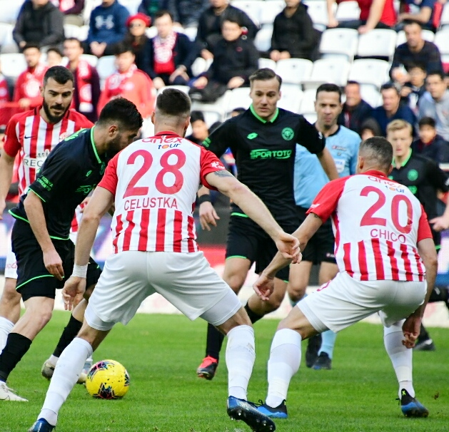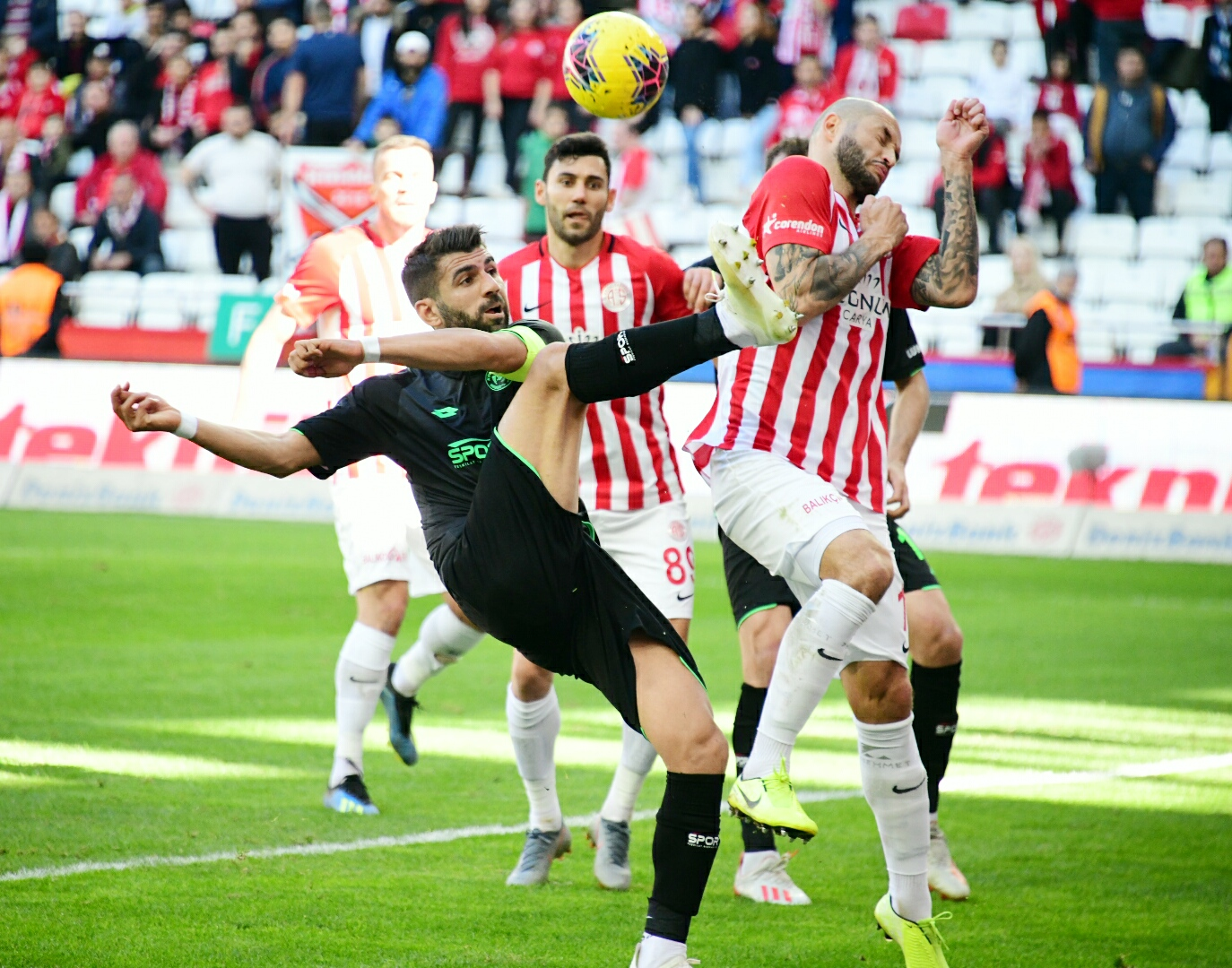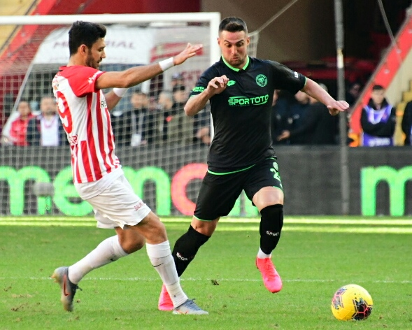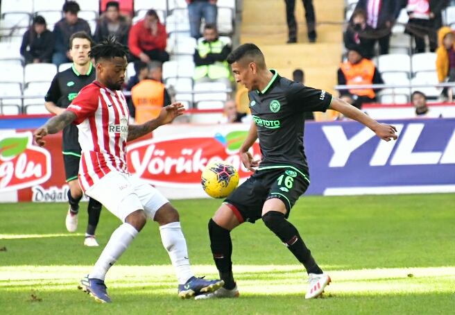 Süper Lig 2019-2020 Cemil Usta Sezonu 20.hafta maçında deplasmanda Antalyaspor ile karşılaşan İttifak Holding Konyaspor’umuz, her iki yarısında da yakaladığı fırsatları değerlendiremediği ve bir golünün iptal edildiği mücadeleden 0-0’lık beraberlikle ve 1 puanla ayrılmak zorunda kaldı. Antalya Stadyumu’nda saat 14:00’da başlayan karşılaşmayı Kulüp Başkanımız Hilmi Kulluk, yöneticilerimiz ile yaklaşık 1000 taraftarımızın takip ettiği karşılaşmanın ilk yarısında İttifak Holding Konyaspor’umuz Deni Milosevic, Volkan Fındıklı ve Marin Anicic ile yakaladığı pozisyonlarda kaleci Boffin’i geçemedi. 45+1.dakikada takımımızın Rogerio Thuram ile bulduğu gol VAR incelemesi sonrasında ofsayt gerekçesiyle iptal edildi ve ilk yarı 0-0 sona erdi. İkinci yarıda oyuna giren yeni transferimiz Robert Mak ile yakaladığı iki net fırsatta golü bulamayan takımımız sonuç değişmeyince mücadeleden 0-0’lık sonuçla ve 1 puanla ayrıldı. STAD: Antalya Stadyumu HAKEMLER: Halis Özkahya, Serkan Ok, Süleyman Özay ANTALYASPOR: Boffin, Bünyamin, Celutska, Veysel Sarı, Kudriashov, Chico, Yekta (Dk.69 Charles), Fredy, Mukairu, Sinan Gümüş (Dk.79 Doğukan), Gustavo Blanco (Dk.64 Amilton) YEDEKLER: Ferhat, Ersan Adem Gülüm, Eren Albayrak, Charles, Ufuk Akyol, Harun Alpsoy, Hakan Özmert, Lukas Podolski TEKNİK SORUMLU: Tamer Tuna İTTİFAK HOLDİNG KONYASPOR: Serkan Kırıntılı, Ömer Ali Şahiner, Selim Ay, Marin Anicic, Guilherme Sitya, Volkan Fındıklı, Jens Jonsson, Levan Shengelia (Dk.74 Paolo Hurtado), Faruku Miya (Dk.56 Robert Mak), Deni Milosevic, Rogerio Thuram (Dk.85 Riad Bajic) YEDEKLER: Ertuğrul, Mücahit Atalay, Ali Turan, Uğur Demirok, Amir Hadziahmetovic, Alper Uludağ, Nejc Skubic TEKNİK SORUMLU: Aykut Kocaman SARI KARTLAR: Bünyamin, Veysel Sarı, Charles (Antalyaspor) GOL: Yok