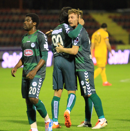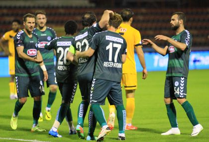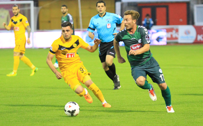 Spor Toto Süper Lig'de 2013-2014 sezonunun son maçında deplasmanda Eskişehirspor ile karşılaşan Torku Konyaspor'umuz, ilk yarısını Recep Aydın'ın golüyle 1-0 önde tamamladığı mücadeleden Jorquera'nın penaltı golüyle 1-1 berabere ayrıldı ve sezonu 42 puanla tamamladı. STAD: Eskişehir Atatürk HAKEMLER: Mustafa Öğretmenoğlu, Seçim Demirel, Engin Erdem ESKışEHıRSPOR: Boffin, Kamil Ahmet, Sezgin, Dede, Özgür Çek, Hasan Hüseyin (dk.90 Hürriyet), Erkut (dk.58 Erman Kılıç), Lawal, Kamara, Jorquera, Necati Ateş (dk.37 Bienvenu) YEDEKLER: Sinan, Serol,Tarık Çamdal, Okan Aydın TEKNıK SORUMLU: Ertuğrul Sağlam TORKU KONYASPOR: Kaya, Tolga, Selim, Erdinç, Mehmet Uslu, Kibong (dk.64 Tomas Borek), Ali Çamdalı (dk.84 Yunus Emre), Recep Aydın (dk.84 Okan Derici), Djalma, Hasan Kabze, Gkekas YEDEKLER: Ahmet Sabri, Ömer Ali, Erdal, Ergün Teber TEKNıK SORUMLU: Mesut Bakkal SARI KARTLAR: Lawal, Özgür Çek (Eskişehirspor), Ali Çamdalı, Kibong, Hasan Kabze, Selim (Torku Konyaspor) GOLLER: Jorquera (dk.52 pen)(Eskişehirspor), Recep Aydın (dk.41) (Torku Konyaspor) MAÇTAN DAKıKALAR (ıLK YARI) 10.dakikada Djalma'nın ortasında defanstan dönen topun gelişine Recep Aydın'ın şutu yine defansa çarparken kaleci Boffin iki hamlede topun sahibi oldu. 16.dakikada Tolga'nın ortasında Gkekas'ın bekletmeden vuruşu kaleci Boffin'de kaldı. 20.dakikada Djalma'nın ortasında ceza sahası içerisinde Gkekas dokunamadı. 21.dakikada Necati Ateş'in karşı karşıya pozisyonda vuruşu kalecimiz Kaya'dan döndü. Boşta kalan topu defans kornere gönderdi. 28.dakikada Hasan Kabze'nin pasında ceza sahası içerisinde topla buluşan Recep Aydın'ın düşerken vuruşu kaleci Boffin'de kaldı. 30.dakikada Özgür Çek'in kullandığı serbest vuruşta kalecimiz Kaya iki hamlede topun sahibi oldu. 41.dakikada Tolga'nın ortasında Gkekas'ın arka direkte kafayla çevirdiği topu ceza sahası içerisinde düzgün bir vuruşla ağlara gönderen Recep Aydın takımımızı 1-0 öne geçirdi. 44.dakikada Recep Aydın'ın ceza sahası içerisinde sert şutunu kaleci Boffin güçlükle uzaklaştırdı. MAÇTAN DAKıKALAR (ıKıNCı YARI) 51.dakikada Lawal ceza sahası içerisinde yerde kaldı. Hakem 'penaltı' kararı verdi. 52.dakikada Jorquera penaltı atışını gole çevirdi ve maça 1-1 ile denge geldi. 62.dakikada Kibongun ortasında Hasan Kabze'nin indirdiği topa Gkekas'ın zayıf vuruşu kaleci Boffin'de kaldı. 64.dakikada Recep Aydın'ın sağ çaprazdan sert şutunu kaleci Boffin direk dibinden kornere gönderdi. 72.dakikada Özgür'ün ortasında Jorquera'nın topukla kaleye gönderdi top kalecimiz Kaya'da kaldı. 76.dakikada Erman Kılıç'ın kullandığı serbest vuruşta kalecimiz Kaya topu kornere gönderdi. 90.dakikada Jorquera'nın karşı karşıya pozisyonda vuruşunda kalecimiz Kaya gol izni vermedi. Karşılaşma 1-1 berabere sona erdi.