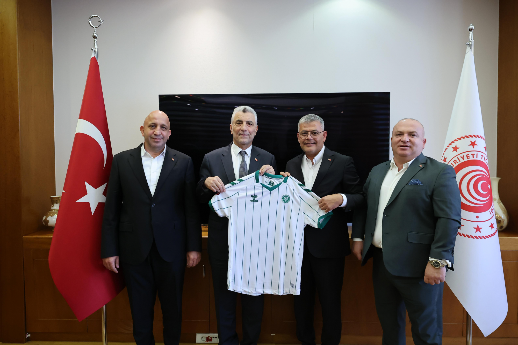 Başkanımız Ömer Atiker, 2. Başkanımız Celalettin Hakan Katırcı ve Başkan Vekilimiz Ali Kaya, Ticaret Bakanımız Sayın Ömer Bolat'ı makamında ziyaret etti. Samimi ortamda geçen ziyarette, kulübümüzün hedefleri ve gelecek planları konuşuldu. Başkanımız Ömer Atiker, "Konyalı hemşehrimiz Sayın Bakanımız Ömer Bolat ile Konyaspor'umuz adına verimli bir görüşmemiz oldu. Sayın Bakanımızın desteğini yanımızda görmek, hepimize güç veriyor. Destekleri ve katkılarından dolayı taraftarımız ve kulübümüz adına kendilerine teşekkür ediyoruz. Ziyaretimizin, Konyaspor’umuz için hayırlara vesile olmasını diliyor; birlik ve beraberlik içinde nice başarılara ulaşacağımıza yürekten inanıyorum." dedi. Ziyaret, hediye ve forma takdimi ile sona erdi.