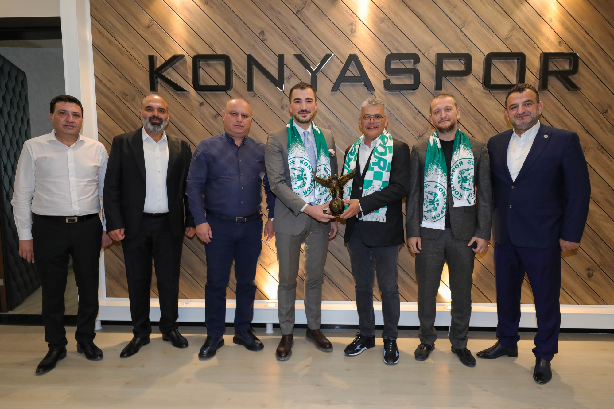 Kulüp Başkanımız Sayın Ömer Atiker ve yönetim kurulu üyelerimize nezaket ziyaretleri devam ediyor. Konyaspor Kulübü İdari Binası'nda misafirleri kabul eden Başkanımız Ömer Atiker'e; As Başkanlarımız Okay Tınkır, Ömer Demirhan, Mehmet Baypınar ile Yönetim Kurulu Üyelerimizden İsa Özgençoğlu eşlik etti. Başkanımız Ömer Atiker ve yönetim kurulu üyelerimiz; İlbank Konya Bölge Müdürü Sedat Yılmaz, Basın İlan Kurumu Konya Şube Müdürü Mehmet Feramuz Ayan, HASMER Konya Mercedes Bayi Genel Müdürü Mustafa Yanıktepe, Konyaspor Akademisi U19 forma sırt sponsoru Yapalı İnşaat Yönetim Kurulu Başkanı Hasan Birol Yapalı, Anadolu Medya Grubu (ANMEG) Vakfı Mütevellisi Nurettin Bay ve İlker Özkan, stadyum isim sponsorumuz MEDAŞ Genel Müdürü Erol Uçmazbaş, Müstakil Sanayici İş Adamları Derneği Konya Gençlik Şubesi (Genç MÜSİAD Konya) Yönetim Kurulu Başkanı Mahmut Asım Elliiki ve Yönetim Kurulu Üyeleri, Konya Gençlik ve Spor İl Müdürü Birdal Öztürk ile Kulüp avukatlarımız Safa Camcı ve Ahmet Murat Koru'yu ağırladı. Başkanımız Ömer Atiker, “Göreve geldiğimiz ilk andan itibaren, Konyaspor’umuzun başarılı olması noktasında şehrimizin tüm dinamiklerinin bir araya gelmesi gerektiğini ifade ettik. Çok şükür geride kalan üç aylık dönemde bu noktada verilen desteklerle doğru yolda olduğumuzu düşünüyoruz. Konyaspor, şehrimizin önemli bir marka değeri. Bu marka değerimizi güçlendirmek, camiamızın ortak akıl ve dayanışmasıyla mümkün olacaktır. Yönetim Kurulumuzdaki değerli arkadaşlarımız ile bunun için mesai harcıyoruz. Şehrimizin dinamiklerinin ve Sivil Toplum Kuruluşlarının yanımızda olduğunu, destek verdiğini görmek bize ayrı bir moral motivasyon oluyor. Konya olarak omuz omuza durmalıyız. Çünkü; birlik ve beraberlik içerisinde olduğumuz vakit her türlü zorluğun üstesinden geleceğimize inanıyoruz.” diye konuştu. Ziyaretler, karşılıklı hediye takdimiyle sona erdi.