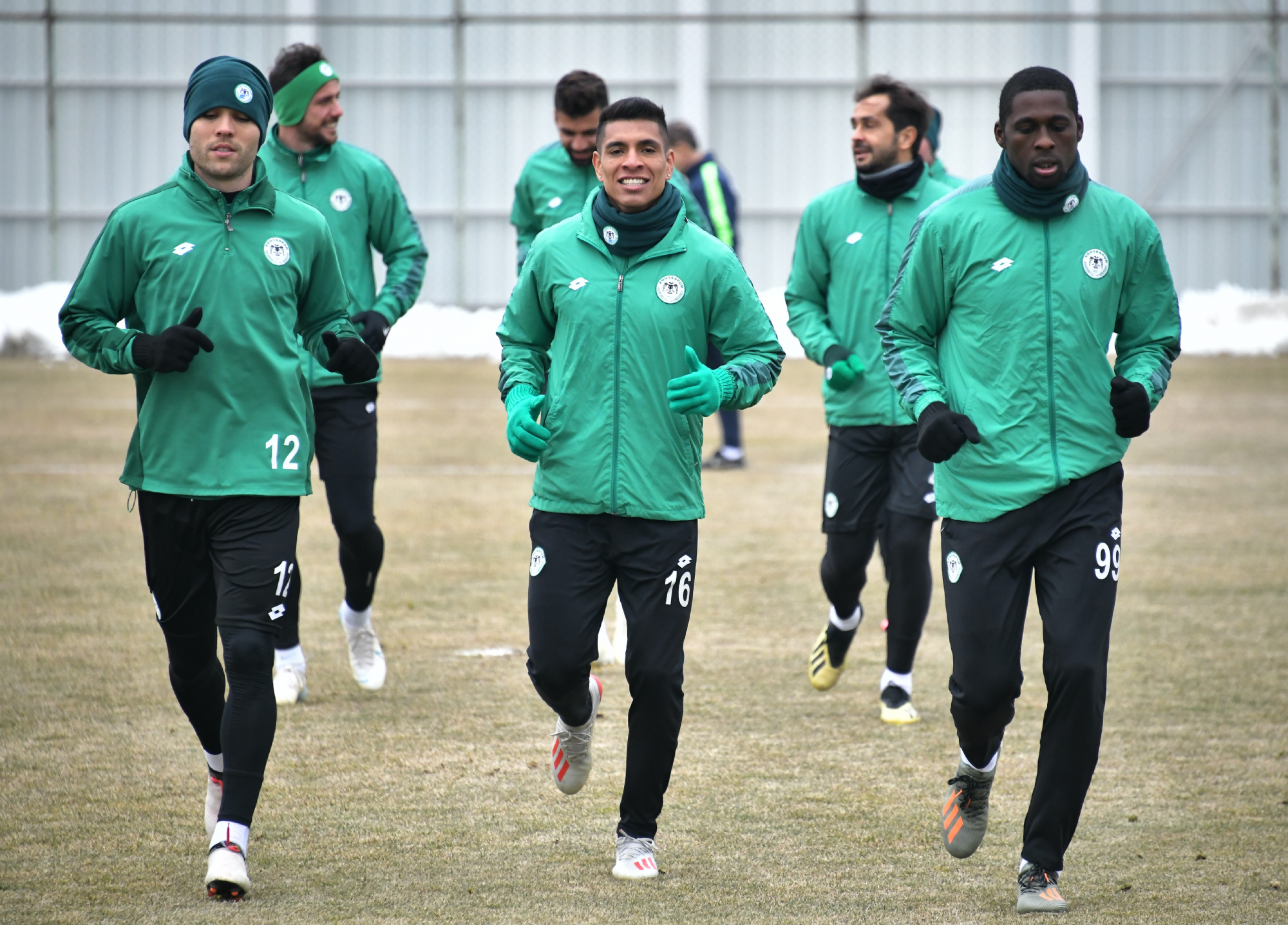 Süper Lig’de 2019-2020 Cemil Usta Sezonu 22.hafta maçında 15 Şubat Cumartesi günü Göztepe’yi konuk edecek İttifak Holding Konyaspor’umuz, bir günlük aradan sonra yapılan antrenmanla hazırlıklarına yeniden başladı. Kayacık Tesisleri’mizde alt yapı antrenörlerimiz Soner Demirel, Çağdaş Çankaya ve kaleci antrenörü Yunus Emre Sürmeligöz yönetiminde gerçekleşen antrenmana tedavilerine devam edilen ve takımdan ayrı çalışan Ali Karakaya, Faruku Miya, Ömer Ali Şahiner, Serkan Kırıntılı ile Volkan Fındıklı katılmadı. Isınma hareketleri ile başlayan antrenman topla yapılan çabukluk çalışması ve 5’e 2 ile devam etti. Oyuncularımız topla oyunun ardından yapılan çift kale maç ile antrenmanı tamamladı. Antrenman Fotoğraflarının Tamamı İçin: https://we.tl/t-8Y126Y0vhn